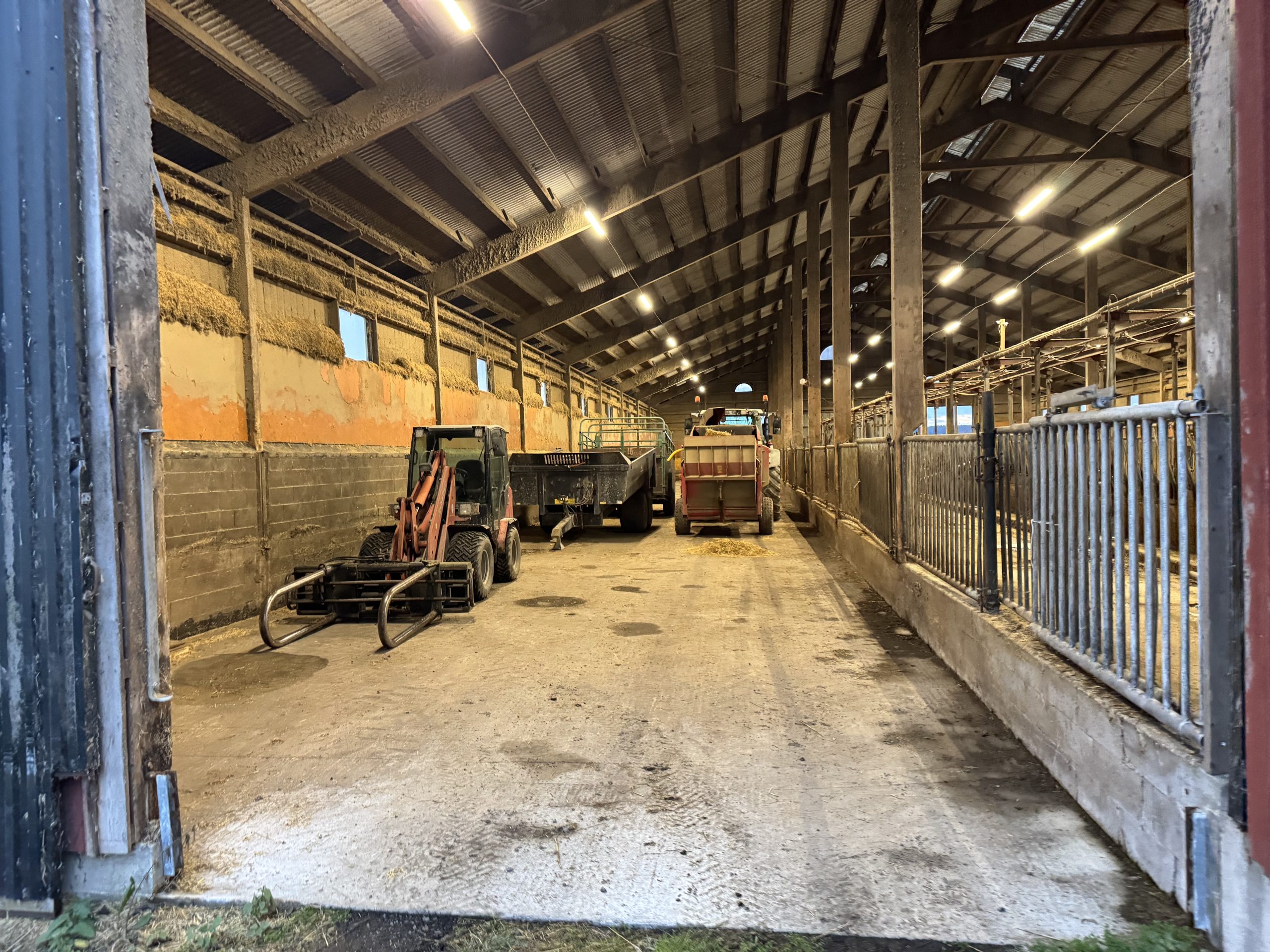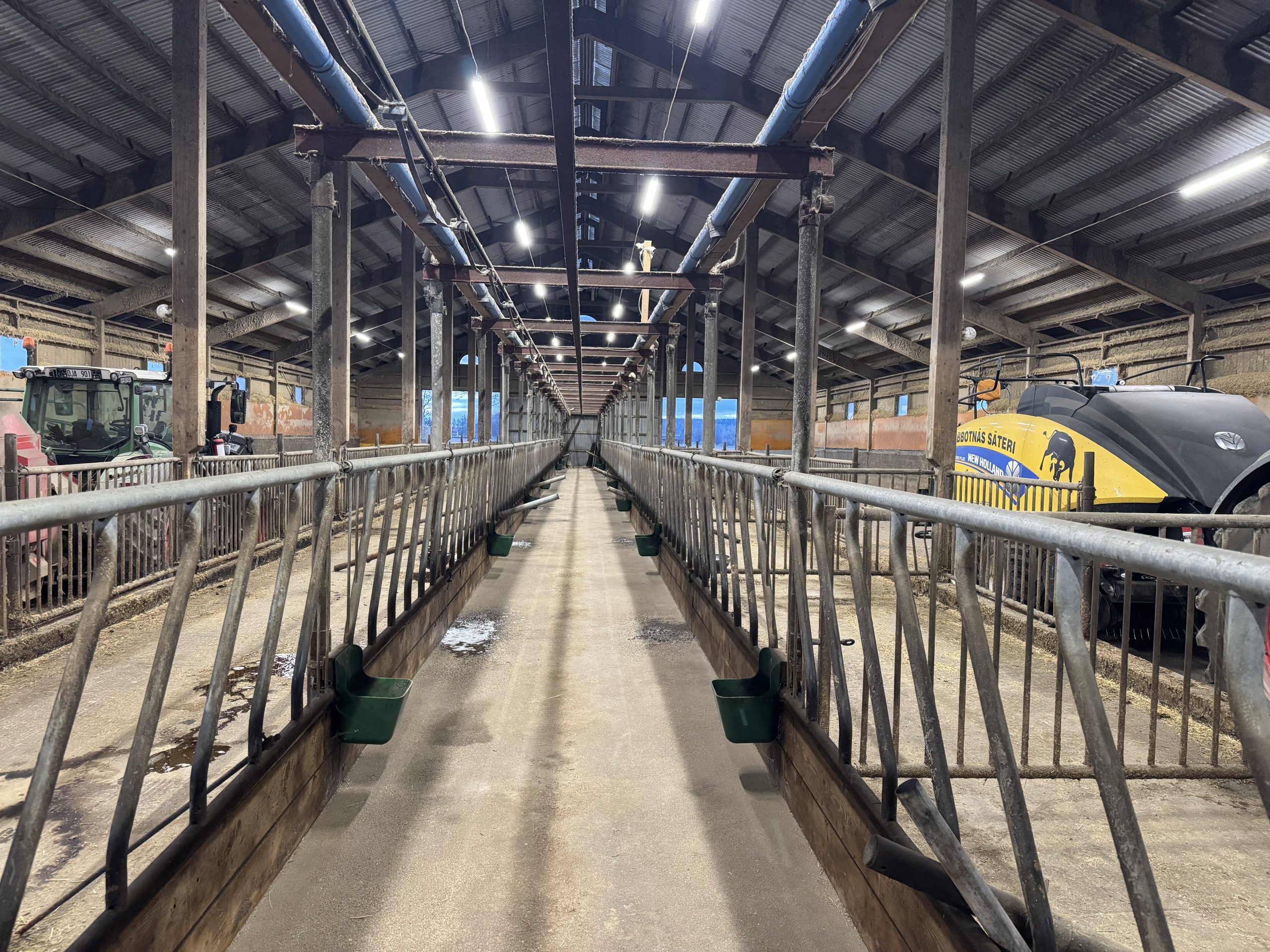 Våra lagård som går under namnet 2:an för att den byggdes som nummer två, får numera jobba extra som maskinhall också. När det inte är djur i den, så har vi den helt enkelt till att ställa annat i, mest maskiner men även diverse annat. Fem månader utav året så är den maskinhall, men resten av året är den lagård år våra dikor. Nu är det senhöst och det innebär att den ska gå från maskinhall till lagård för nu ska snart djuren in. I de flesta fall brukar vi redan ha tagit in djuren så här års, men nu är hösten så varm och vädret bra så de får fortfarande gå ute. Det är dock inte så länge till, i slutet på den här eller början på nästa vecka åker dem in. Ungefär då borde betena börja tunna ut så mycket så att det kommer fattas att äta för dem och vi vill inte att de ska tunna ut för mycket. Hursomhelst så är nu i alla fall förberedelserna för att ta in djur i full gång. Lagården görs i ordning med underhåll och maskinerna får byta plats till andra maskinhallar.