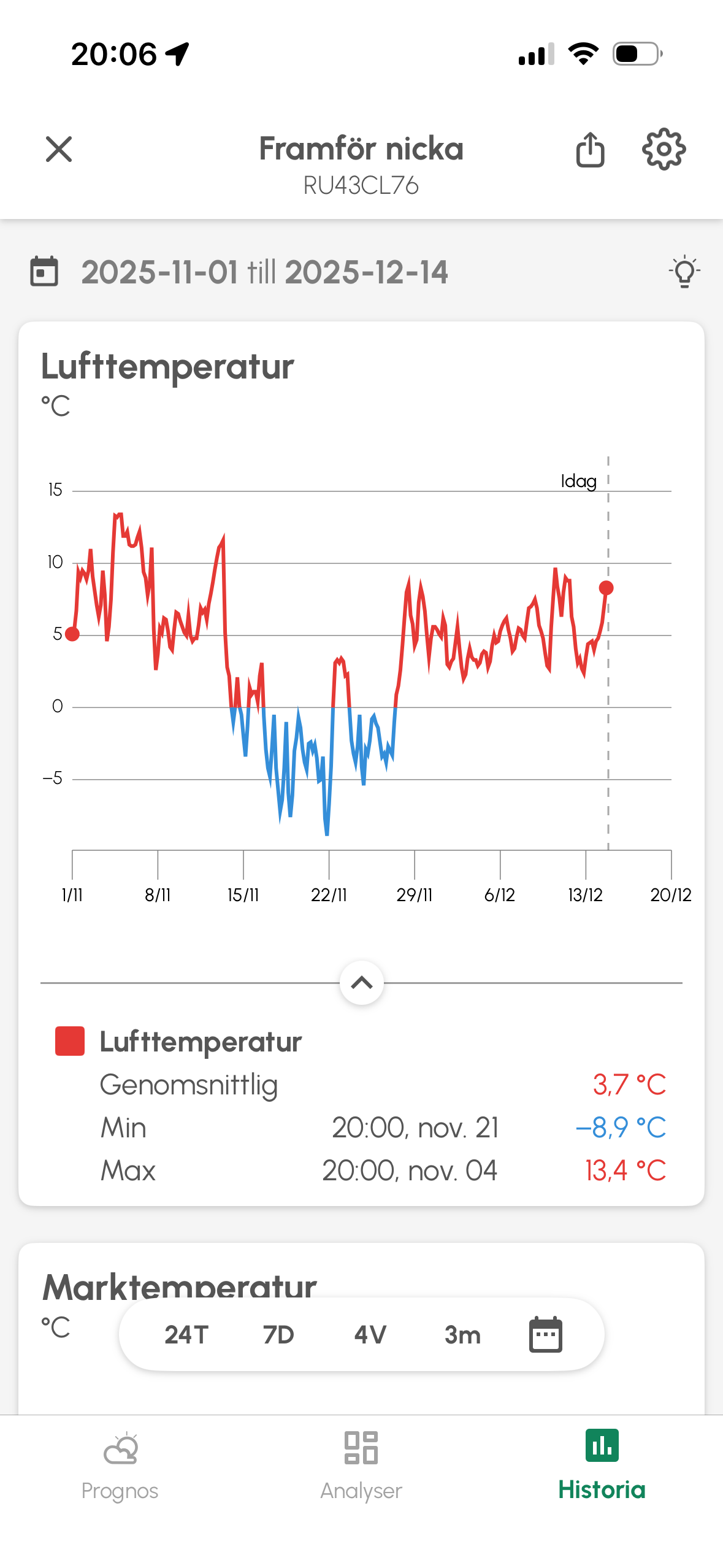 Nu kollar vi snabbt på temperatur denna tidpunkten förra året och detta år enligt en av våra väderstationer: