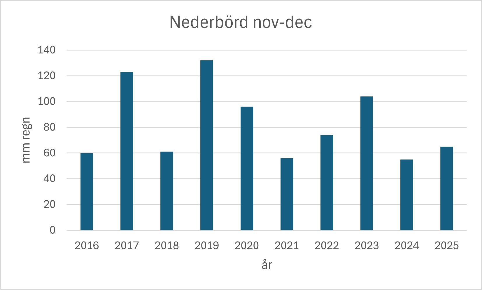 Kollar man på dessa siffror så är det i alla fall ett utav de blötare åren i år, men dyker man in i endast november-december så ser det ut så här: