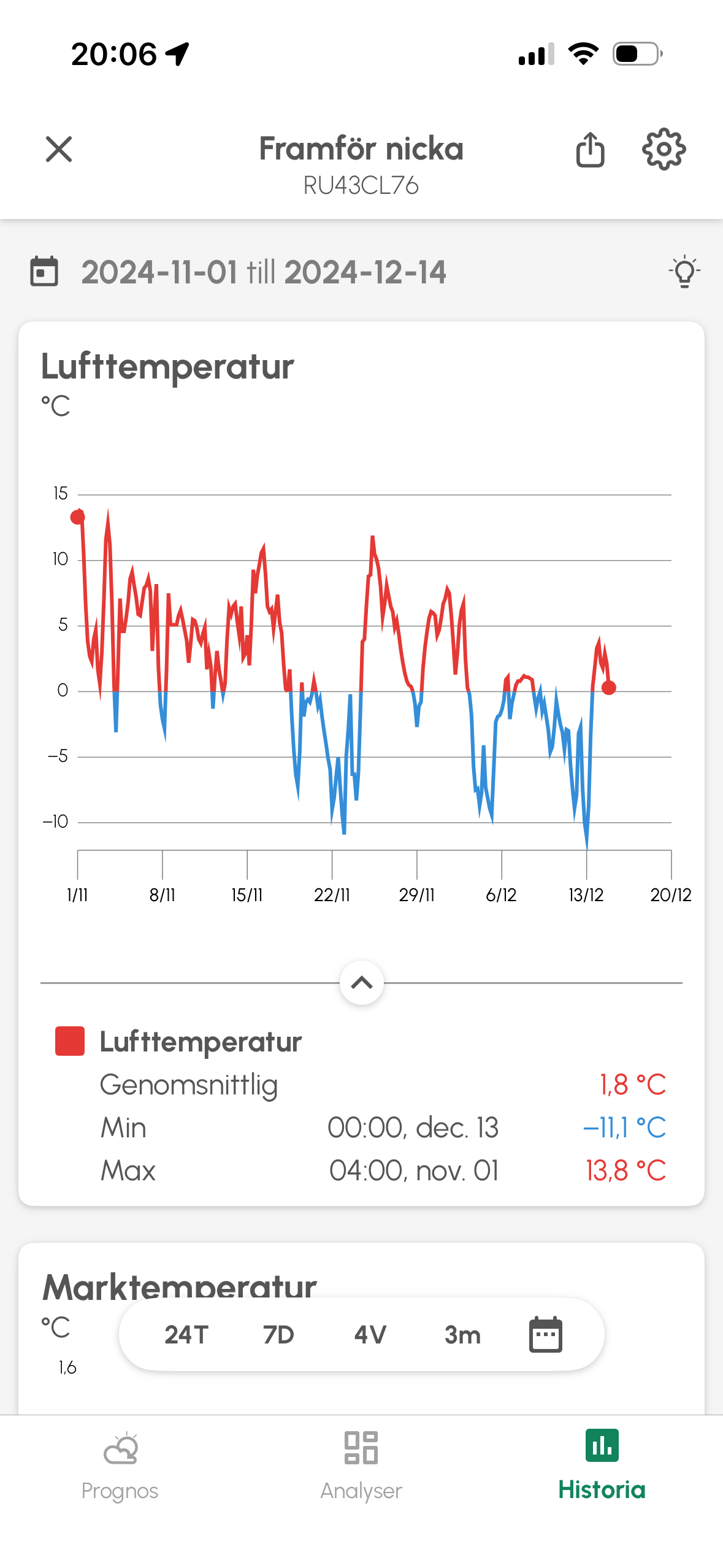 Nu kollar vi snabbt på temperatur denna tidpunkten förra året och detta år enligt en av våra väderstationer: