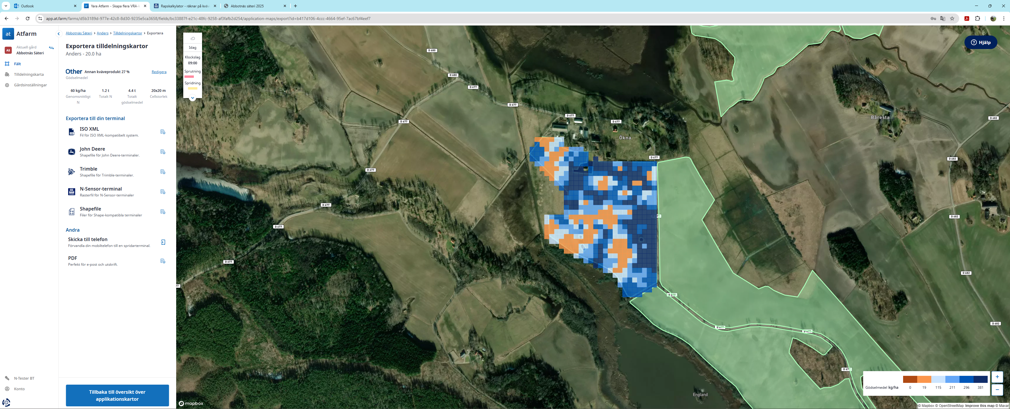 Vi började juni direkt med att köra lite gräs ute hos kund. Sen kom ett utav årets egentligen enkla, men ändå tuffa beslut. Efter många mätningar i kväve-nollrutor med N-sensorn såg vi att det inte fanns något behov av att gödsla mer. Det skulle alltså räcka med endast en huvudgiva på 150 kg N/ha för de flesta fält, de fält som gödslades mest fick 165 kg N/ha i snitt. Men som sagt de flesta fick inte mer än 150 kg N/ha. Det var en hel del funderingar, diskussioner och mätningar på olika sätt innan vi kom fram till att inte gödsla mer och det visade sig senare vara helt rätt beslut. Tacka N-sensorn för detta, tack vare detta sparade vi en massa gödning i lager. Sedan fortsatte gräskörningen i full fart och vi fick ett rejält pass där vi på tre dagar lyckades producera 3 8 78 balar i två olika län. Sedan blev det mer fältvård och djurskötsel.