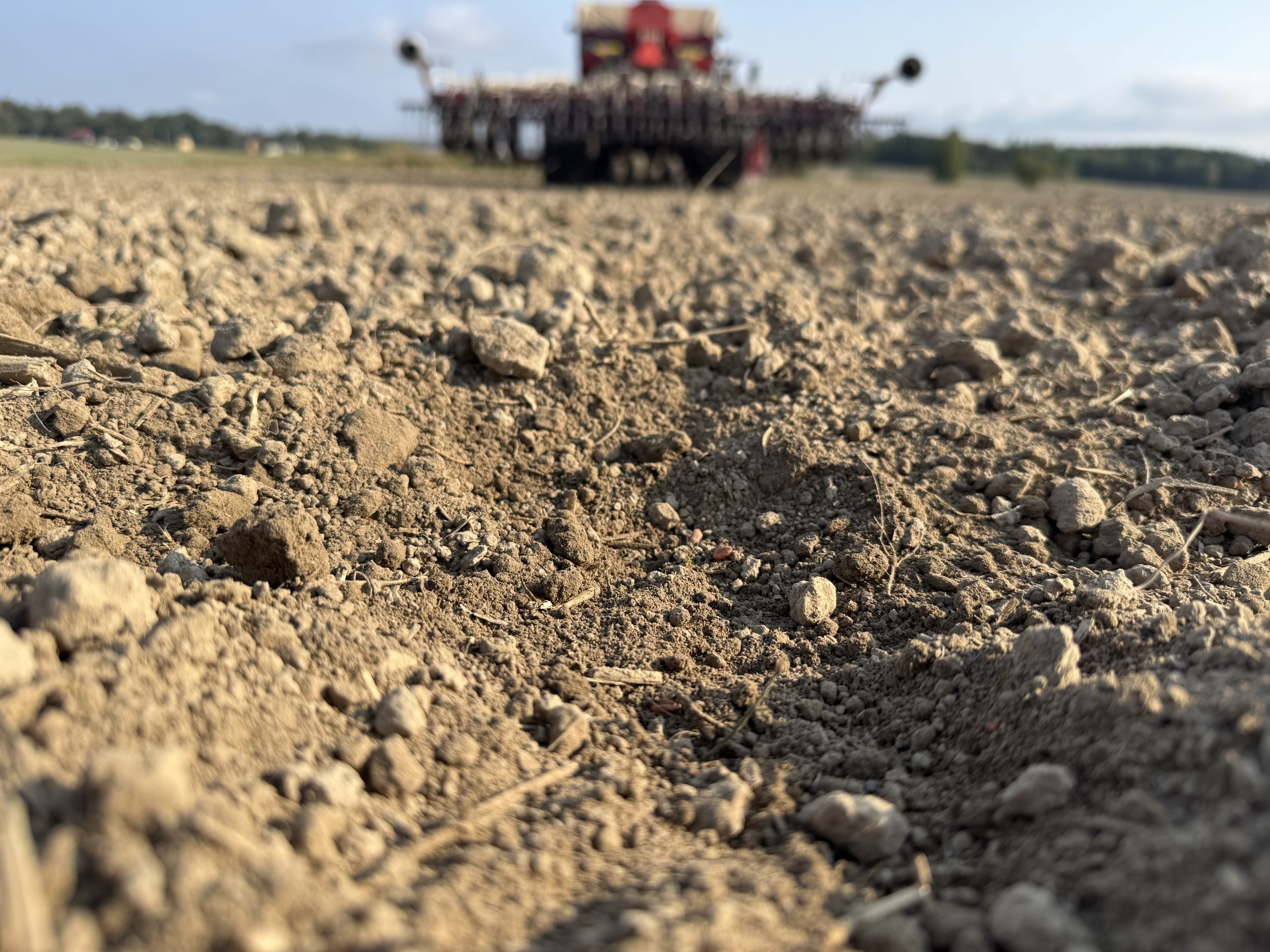 Om augusti är våran mes intensiva månad så är september våran mest slitsamma skulle jag nog påstå. Man kommer från en väldigt intensiv månad ganska så dränerad, men vet att man inte kan slappna av förens nästa års grödor är etablerade, det eviga nötandet börjar…. Månaden började med tydligt fokus på jordbearbetning inför höstsådden och åttonde augusti började vi peta ner höstvete i marken. Det började i ganska så torr förhållanden, men med gott om regn i prognosen. Det blev sedan ett läge där det inte alls kändes som att vi skulle få allt vi ville höstsått. Det regnade på bra i många dagar och verkade inte alls vilja torka upp. Från 11 september till 20 september stod såmaskinen helt still. Då kunde vi peta ner lite på vallbrottet som var torrare än det andra. 24 september kom höstens första frost och 27 blev vi färdigsådda med det vi hade som mål. Det var ett lite knepigt höstbruk, men nu ser grödorna bra ut.