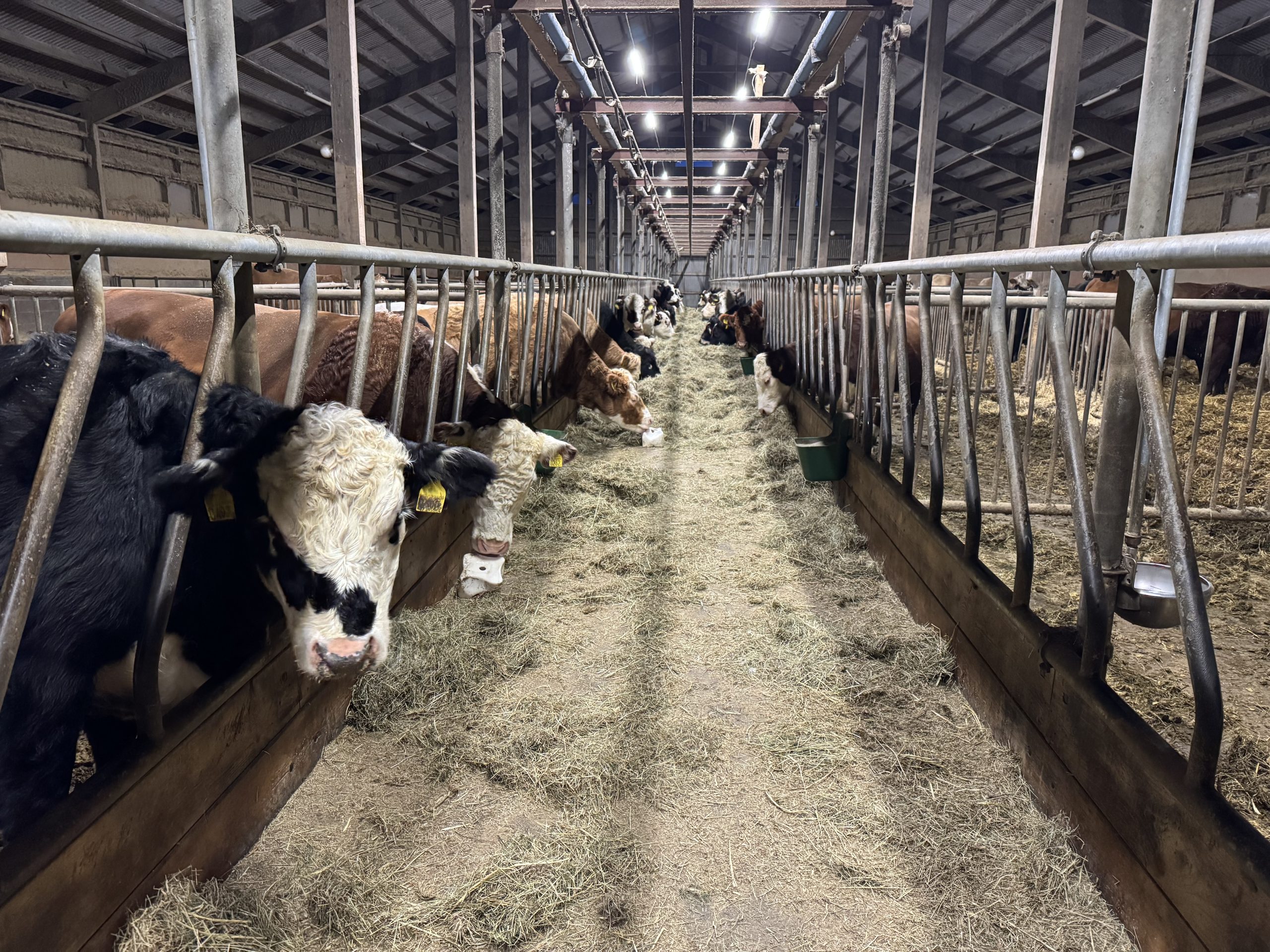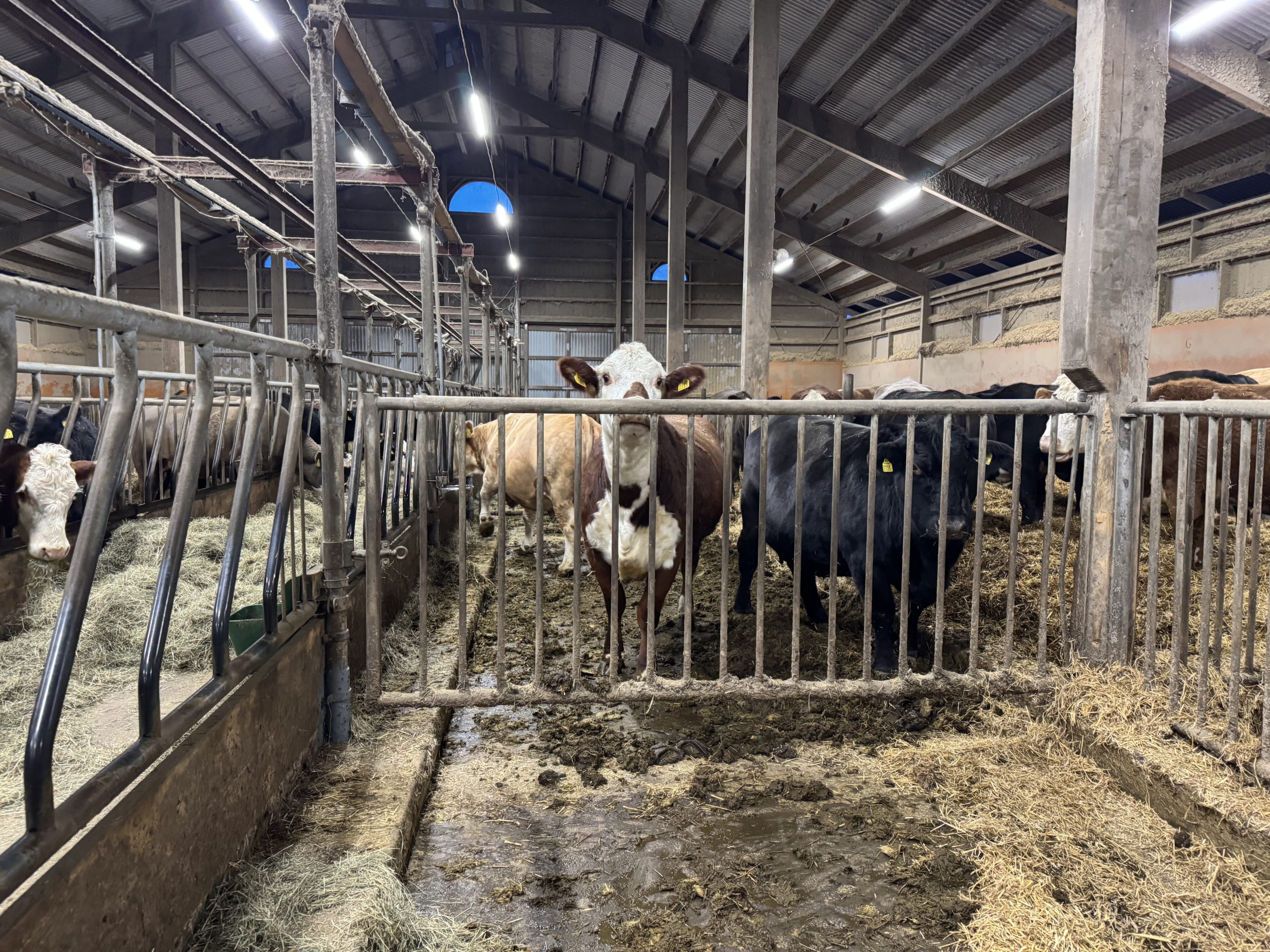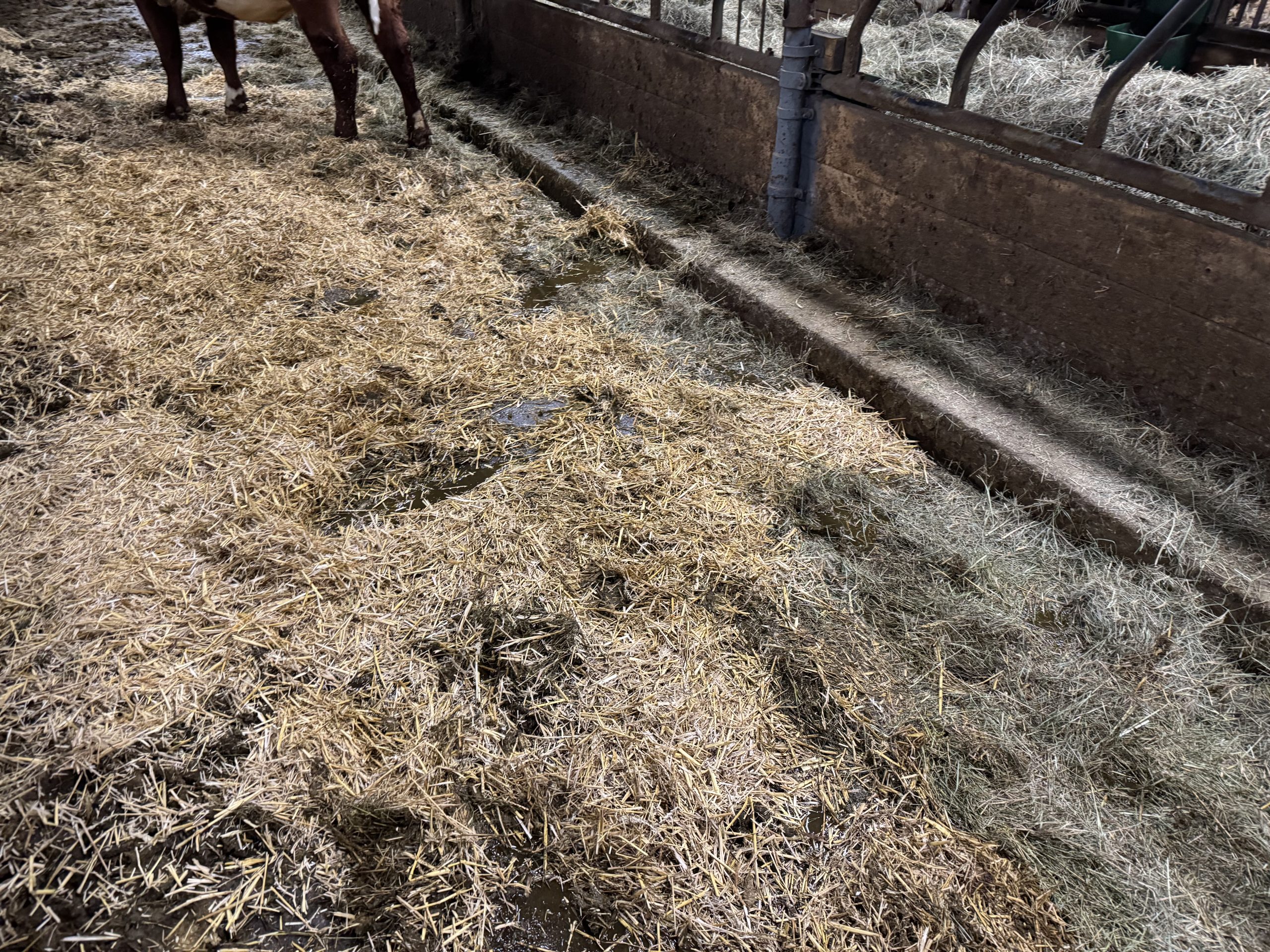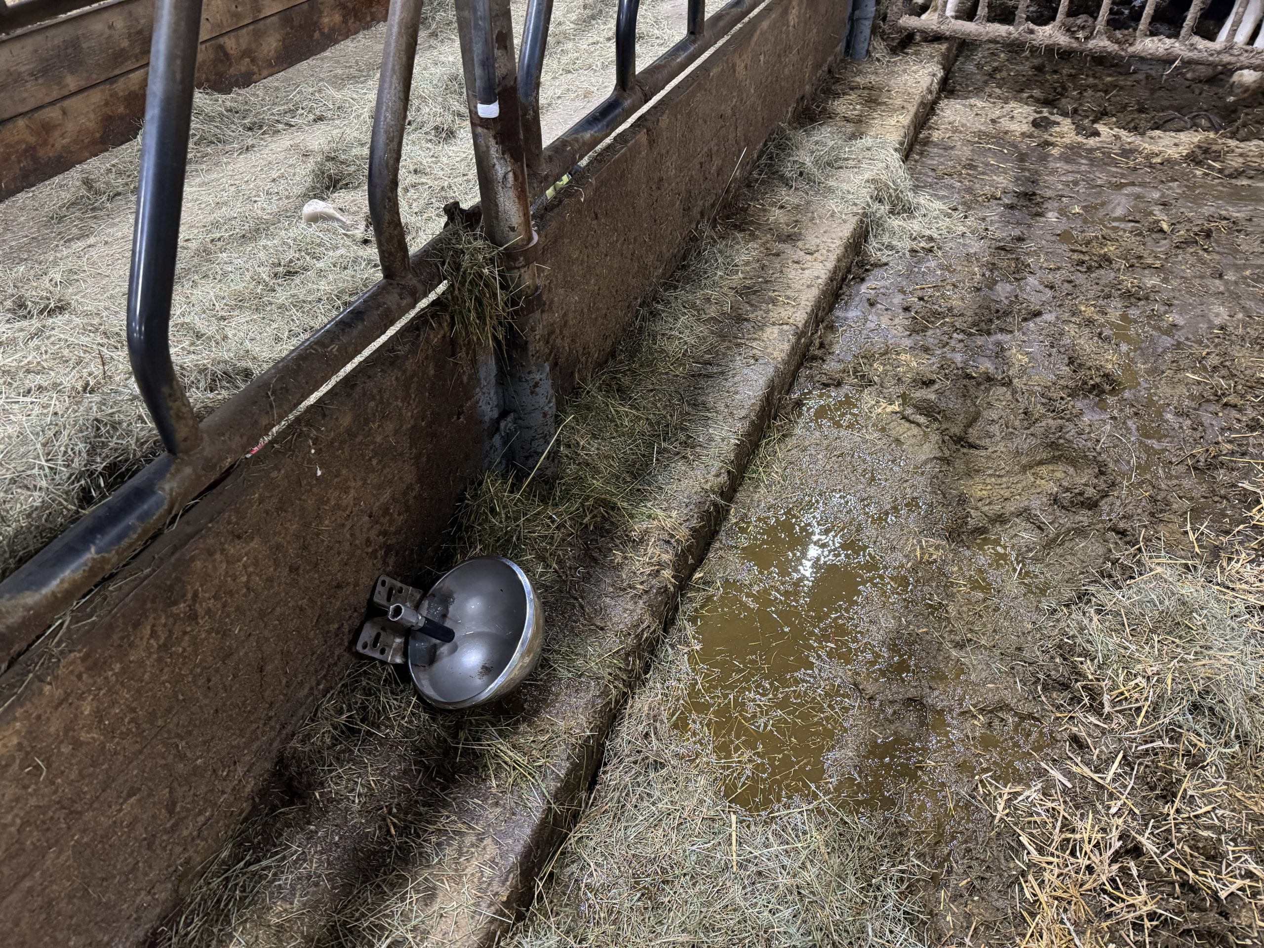 Endast lite vatten och skrapdag imorgon gjorde att halm i gången fick räcka för att torka upp. Det var inte alls mycket vatten i gången.