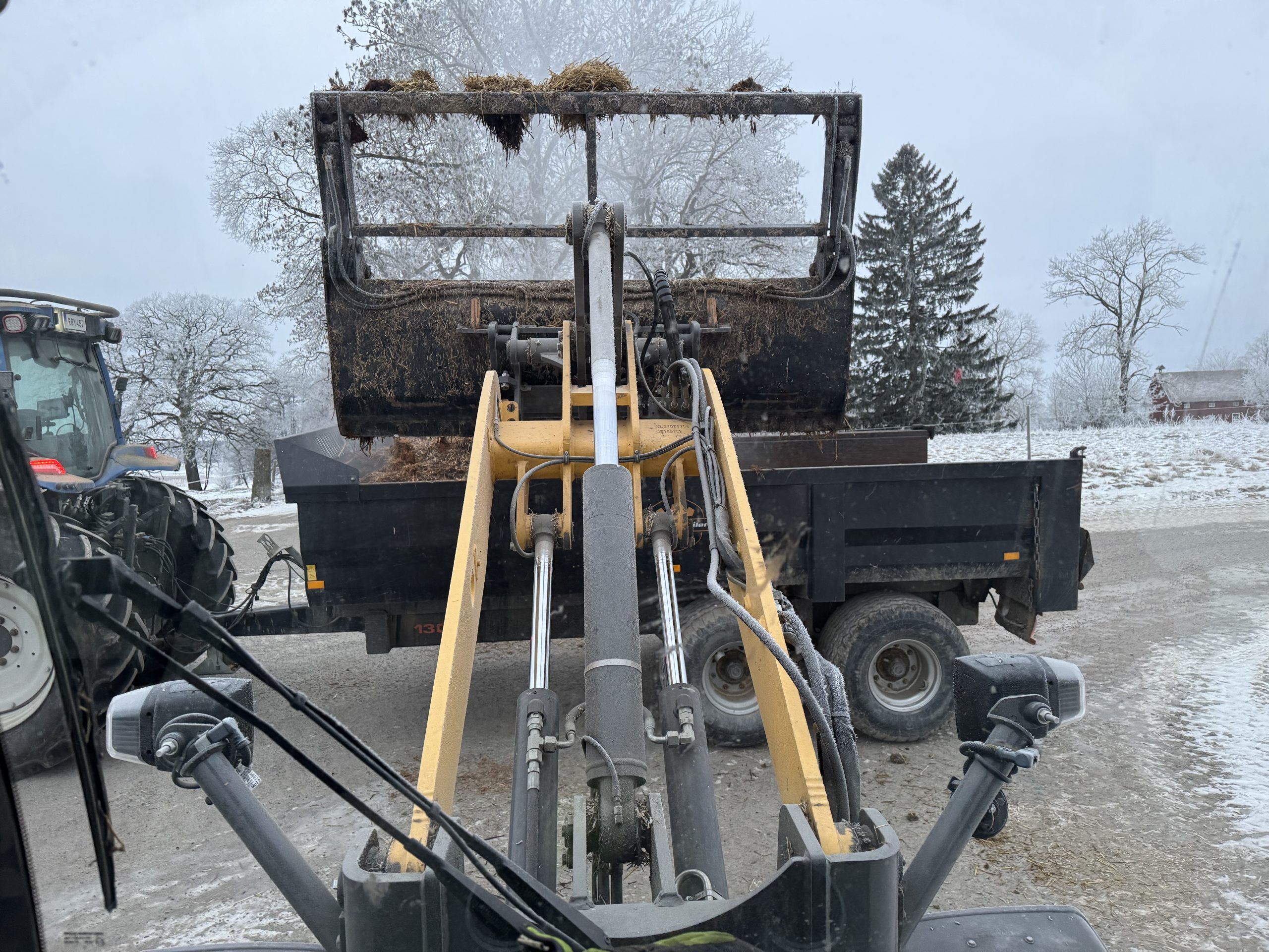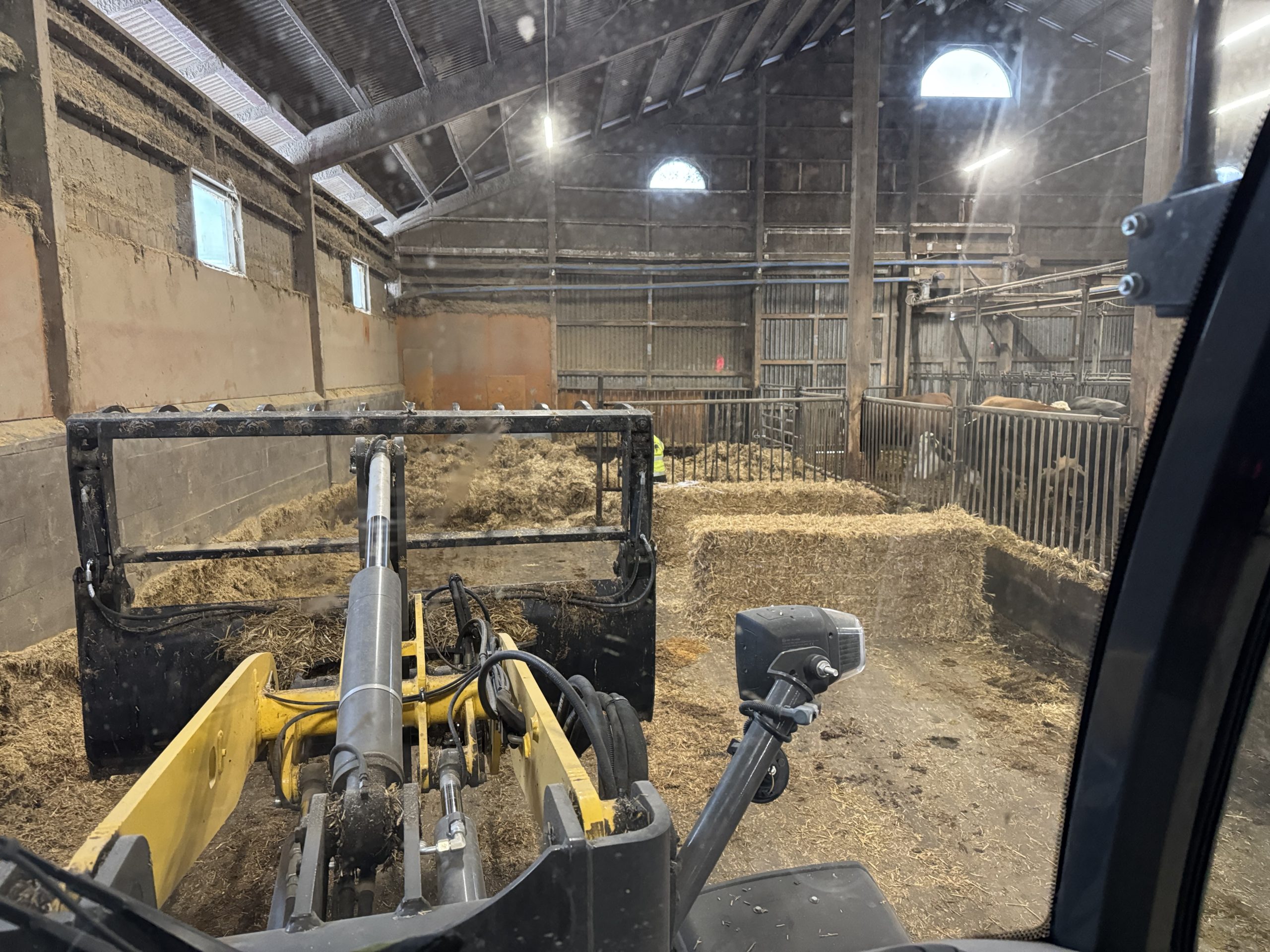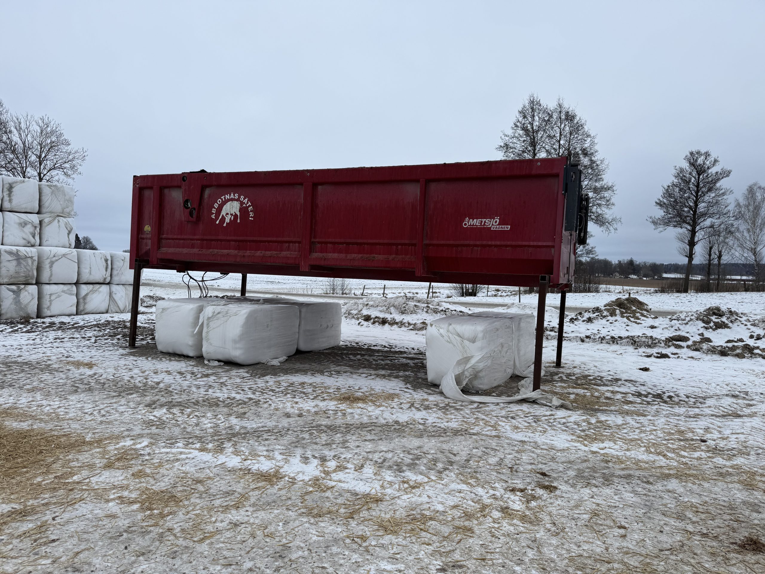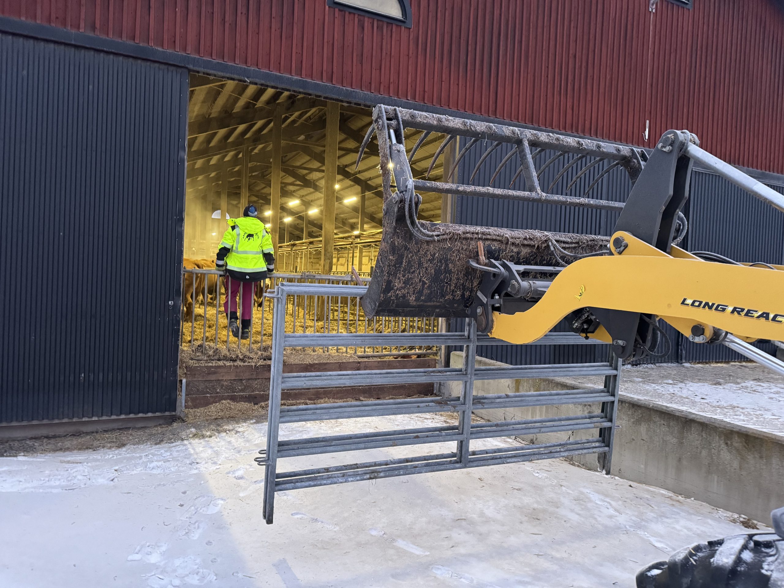 Detta arbetsmoment är ett moment som vi börjar få till ganska så bra efter många års förbättring och effektivisering. Både genom uppdateringar i maskinparken och planeringsförbättringar. Den här gången så blev det dock något steg bakåt i effektivisering i maskinparken, men det kompenserade vi för i planeringen och då tappade vi inte effektiviteten märkbart. Tur när det går att parera ändringar på ett bra sätt tycker jag. Det som är ändringen är att en utav kärrorna (den kärra som vi kallar stora) vi har när vi gör detta står lite på verkstad nu och väntar på packningssats till tippkolven, men vi kan inte vänta med att gödsla ut tills den är klar så vi fick helt enkelt anpassa oss lite efter det vi hade. Det resulterade i att istället för en 18 m3 och en 27 m3 så ersattes den på 27 m3 med en på cirka 10 m3 kanske, helt klart skillnad. Som tur var så gick det som sagt vara att lösa effektiviteten ändå, vi fick bara inte köra iväg så lång med lassen. När vi gödslar ut så gäller det att lastmaskinen ska få ut så många grepar som möjligt i timmen, det är där kapaciteten sitter, och så länge den har någonstans att tippa så sinkas inte processen. Så med facit i hand så måste jag erkänna att jag är förvånad över att det inte tog längre tid. Ändringen blev dock att den som körde kärrorna inte hade lika mycket tid att hjälpa till inne i lagården, så det gick åt lite extra arbetskraft där idag. I ”vanliga” fall brukar det räcka med två personer som gödslar ut, men idag var vi 2,5-3 personer.