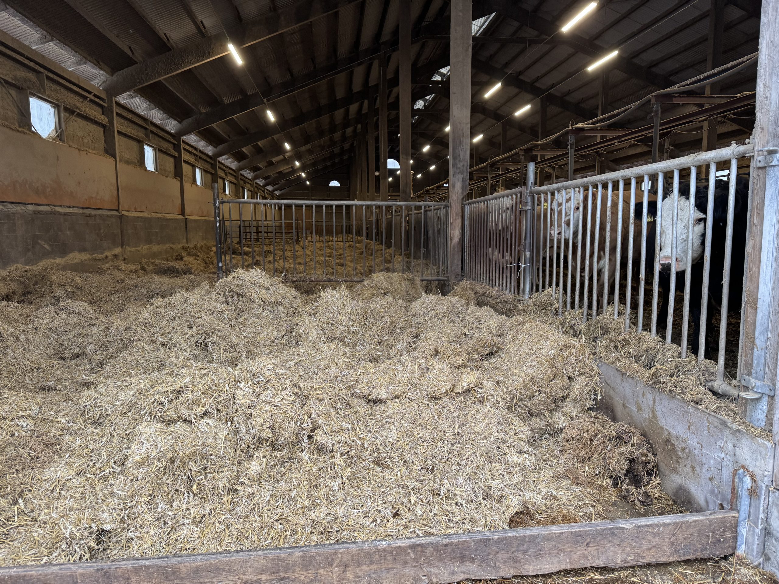 Ungefär så här dags på året brukar vi gödsla ut hos dikorna så att bäddarna är nya lagom till att kalvningarna drar igång. Detta brukar vara uppdelat på två dagar och idag körde vi av dag ett.