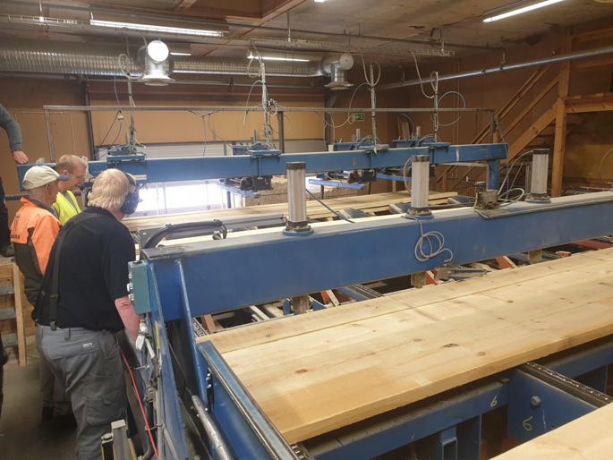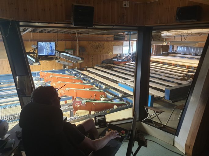 Sedan kom vi in till själva ramsågarna och kontrollrummet där operatören lägger stocken i rätt läge.
