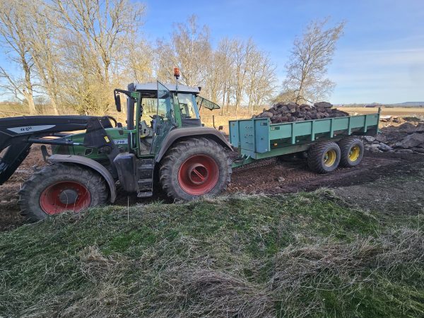 Under tiden fixade jag med djuren och sen tog jag lastmaskin till vår härliga STENIGA åker. Sen gå hem och hämta traktor och kärra.