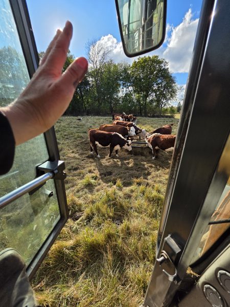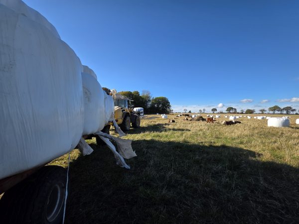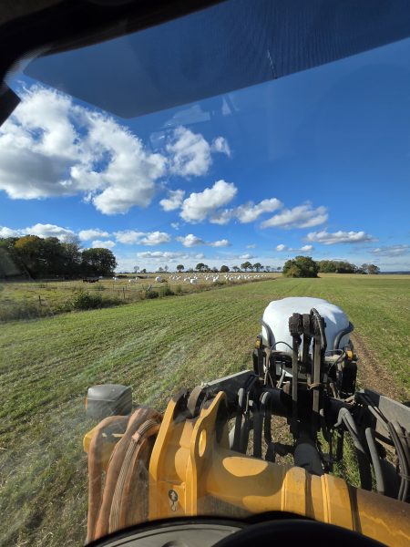 I morgon visar det dessutom riktigt ruskväder och när det blir blött i marken vill vi inte åka ut för att ställa ut balar.
