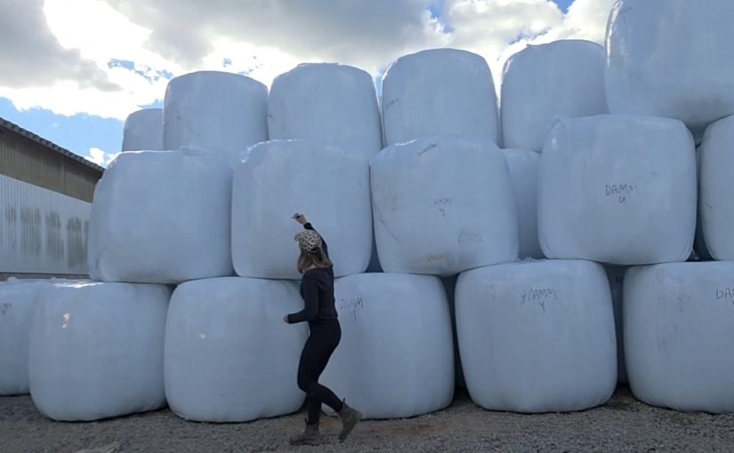95 balar är nu utställda på åkern. Jag ställer dom ungefär med 20 meters avstånd till varandra.