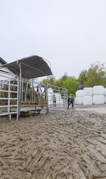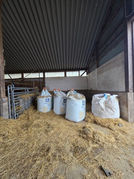 Dom ska få äta ute eftersom det är en vägg i slutet på ladugården så vi kan inte ha ett foderbord vid denna boxen.