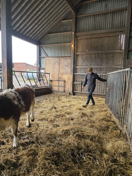 Vi började med att sortera ut en tjurkalv som är med en av kossorna som ska åka. Vi stängde upp alla tjurar och grejade och fick in honom i boxen längst bort i ladugården. Sen fick Oopsie och Daisy flytta till andra sidan och få sällskap av kossorna där.