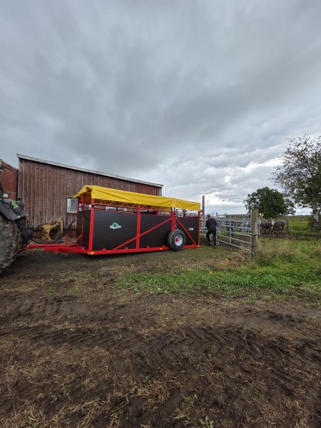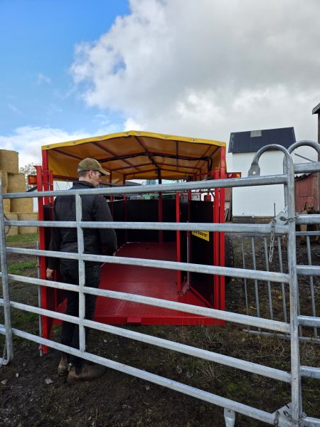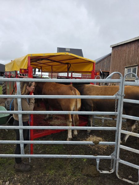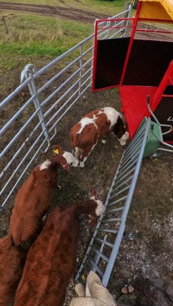 Då kom vi även på idén att använda våran nya djurvagn för att flytta alla kalvar och Kalle, B1 och B2 till ladugården istället för att göra en drivgång. Kalvarna rymmer ju alltid när dom ska gå på ett nytt ställe när det är två trådar. Smart tänkte vi. Det var det också. Men att lasta är med en utmaning.