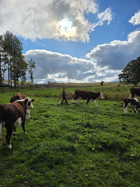 Hej! Idag har vi haft tema kossor, kalvar och tjurar hela dagen. Vi har nämligen sorterat bort kalvarna från sina kossemammor och våra stora tjurar har även avslutat sitt sommarjobb idag och ska in i ladugården.