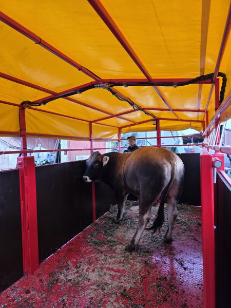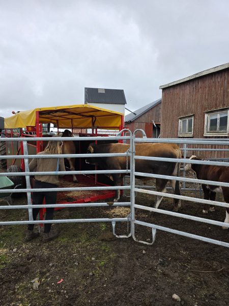 Nu var dom på och det var dags att åka bort till ladugården. En färd på ca 200 meter.