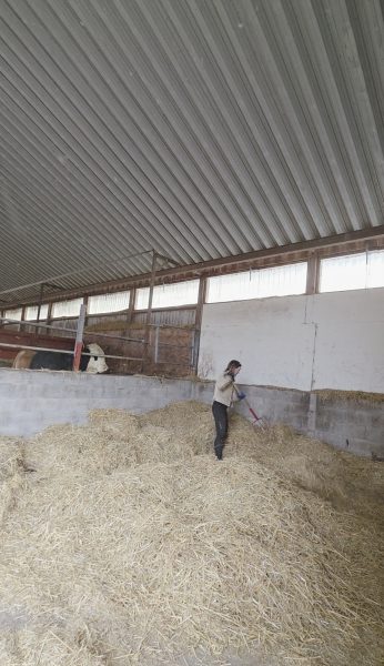 I ladugården har vi en extra box som stått tom. Det har vart en box där tillfälliga saker åker in som tex gödsel just nu. Idag ska boxen bli helt ren för hit ska kossorna som ska åka iväg in och även alla kvigkalvar.