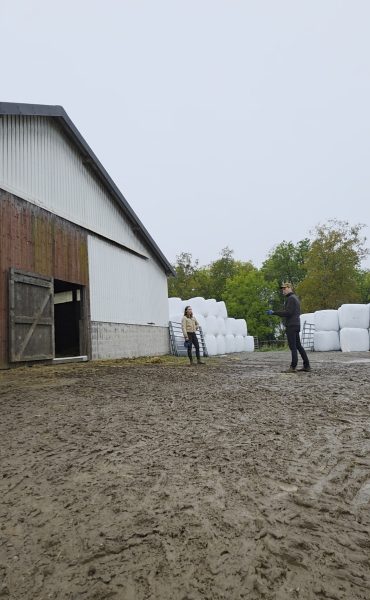 Fixa till halmen som så smidigt redan var här. Vi kör vi halmrivare till boxen brevid så blåser över en del hit.