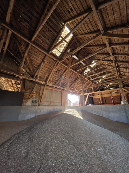 Vi lastade även sista lasset med vete häromdagen. John lastade och jag skottade och sopade. Så nu är lagret helt tomt.