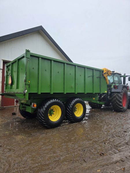 Första backade vi in med trakton och sen fick vi ta lastmaskinen och pallgafflar sista biten.