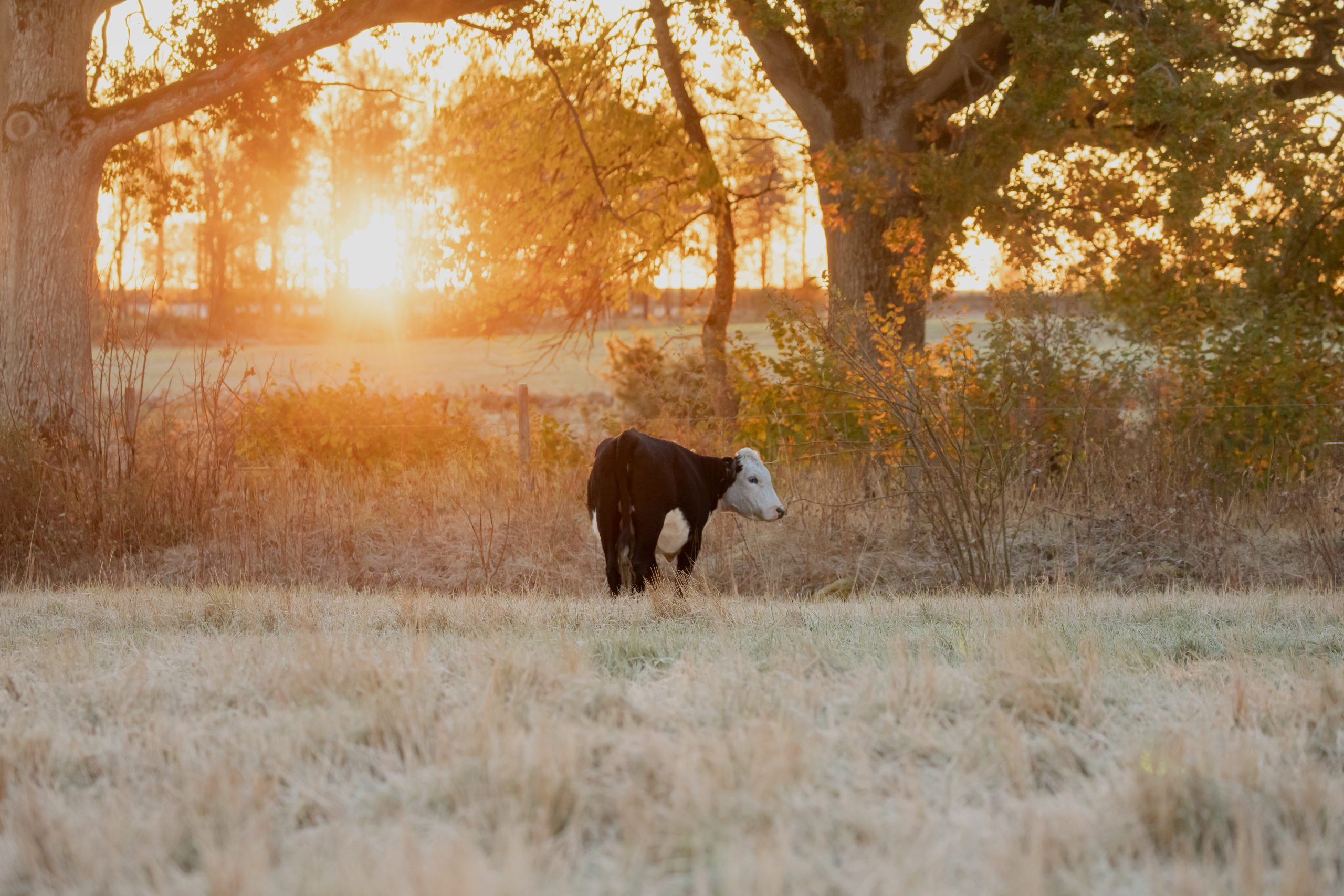 Så självklart kommer här lite höstiga bilder på kossorna. En frostig morgon när solen gick upp begav jag mig ut till kossorna.