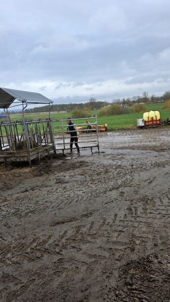 Sen skrapade jag rent kvigornas rasthage. Vi ska absolut inte ha kvar dom här. För blir så skitigt fort där ute. Så om ungefär två veckor ska dom få en till box inne, så stänger vi till rasthagen.