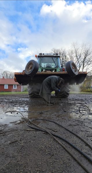 Jag började med att mocka ut framför foderborden hos tjurarna.