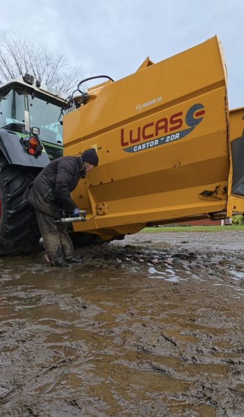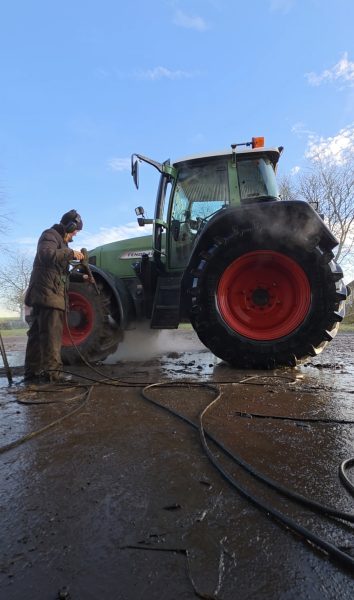 Kul att traktorn får hålla sig fin i 15 minuter iallafall. För direkt efter tvätten var det dags att ta ladugården.