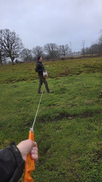 Vi motar in dom med en tråd in i fållan från fållahagen.