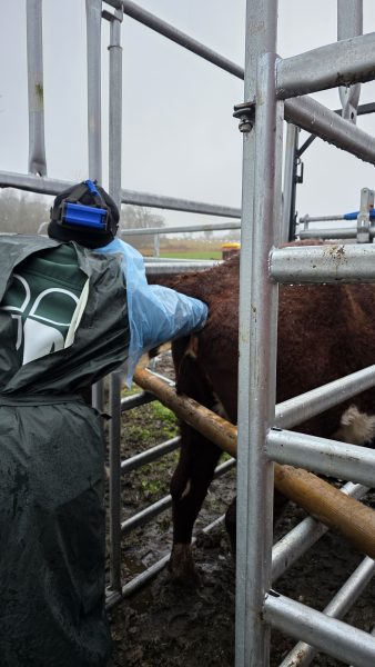 Hej! Idag har vi haft dräktighetsundersökning på kossorna som går ute. Det är alltid lite pirrigt och nervöst inför årets undersökning. För man hoppas ju ändå att alla är dräktiga.