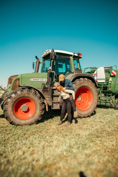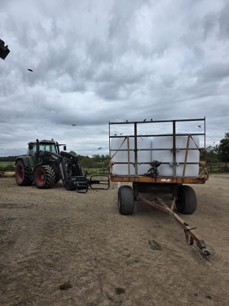 Det var även första året vi plockade balar med traktorn. Det var en tanke med att vi köpte en fronlastare till traktorn att kunna göra detta. Det sparar tid att dra hem balarna med traktorn istället för lastmaskinen som går i 20 km/h. Dessutom är det absolut inte bra för lastmaskinen att dra tunga lass vilket vi ibland gjorde när vi inte kunde vara två som hämtade hem balar. En plockade balar med lastmaskin och en körde traktor med släp. Så detta sparar vi både tid, slitage och diesel på att köpt en frontlastare.