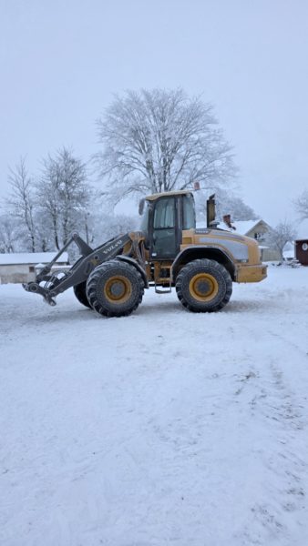 Lagom när jag var klar för att gå och hämta barnen så hör jag lastmaskinens ljud! Härligt! Efter över en timmes grejande fick John igång den. Han trodde det hade kommit in luft i bränslesystemet.