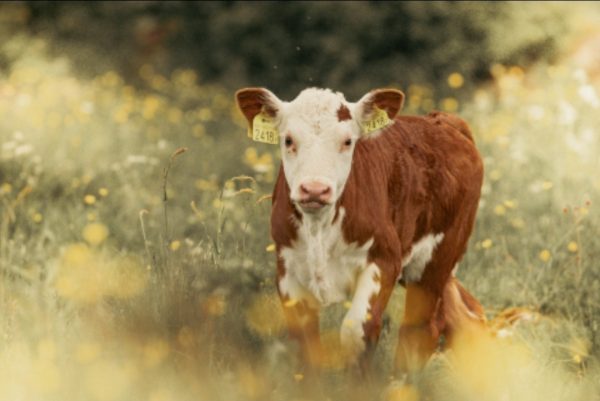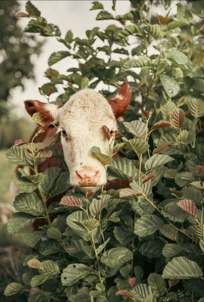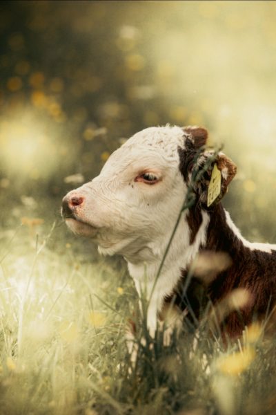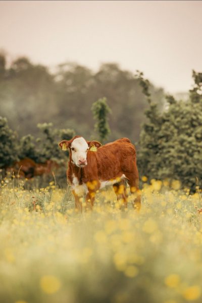 Här har vi en riktigt smörkola i hagen. En färgklick som sticker ut ibland våra herefordfärger. Det är Kola, en av kossorna vi köpte i höstas. Hon är väldigt söt!