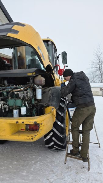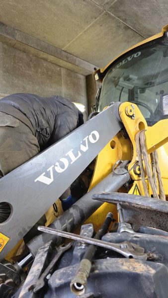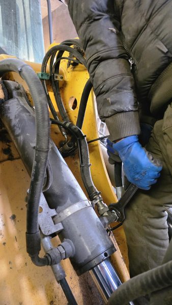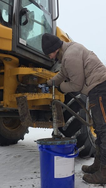 Sen fick lastmaskinen yttligare lite predikyr. Smörja en nippel, lite smörjfett och hydraulolja. Det är faktiskt första gången jag gör just detta moment. Det är John som sköter det i vanliga fall.