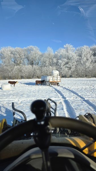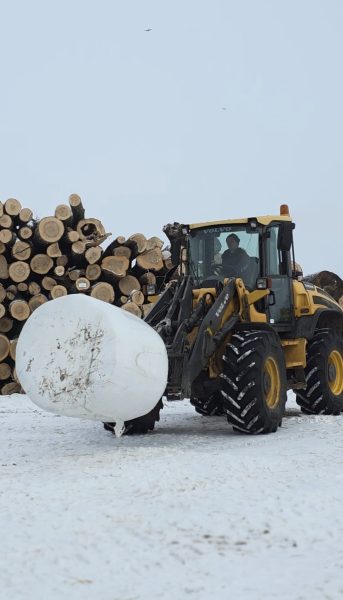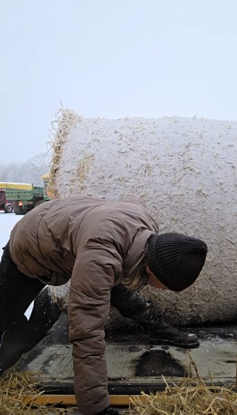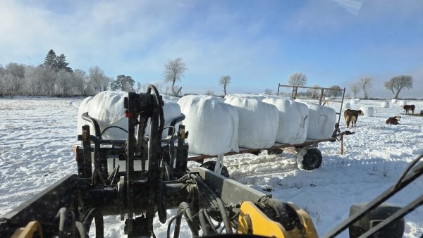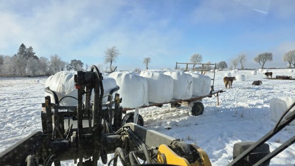 Själv hoppade jag in i lastmaskinen för att fortsätta köra ut balar till kossorna.