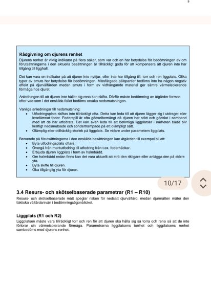 ”Om det hade regnat hade jag bedömt liggplatsen som blöt. Om det regnat nyligen hade jag också bedömt liggplatsen som blöt. Det samvägs sedan med platsens renhet och djurens renhet. Om det bara är blött, men är rent och rena djur, får man ingen anmärkning.” /Veterinären