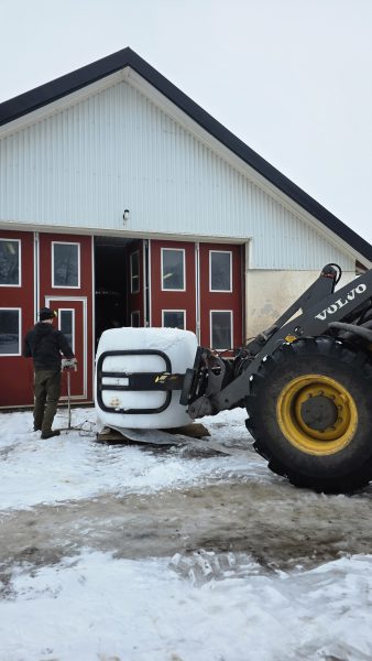 När vi tog över gården och köpte de flesta grejer som traktorer, tröska, såmaskin osv, så var just grejerna inom vall mindre och enkelt. Johns pappa hade inte så mycket djur och då räckte det som fanns, gott och väl. Under tidens gång har vi gått från 12 dikor som fanns på gården till runt 100 djur totalt. Så det blir mer vall att slå, mer balar att pressa och köra hem osv. Därför behöver vi förbättra vallkedjan i takt med att vi har fler djur. Men vi satsar på att bygga upp den med äldre begagnade saker just nu.
