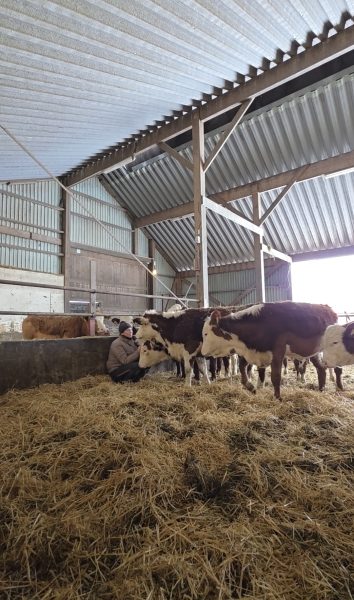 Jag fixar med djuren och har obligatoriskt mys med kvigorna.