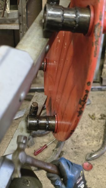 Att lossa dom gamla var svårt. Det hade rostat igen, så dom fick tryckas loss med hydrualpressen. Det small när dom lossnade.