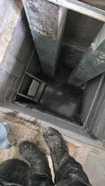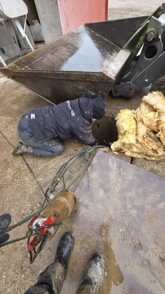 Sen var det egentligen dags att krossa spannmål. Men i elevatorgropen stod det typ 1,5 m högt vatten. Så det var ju inte så enkelt. Vi förde ner en dränkbar pump och pumpade ut massa vatten. Sen i slutet blev det hinkar och dammsugare.