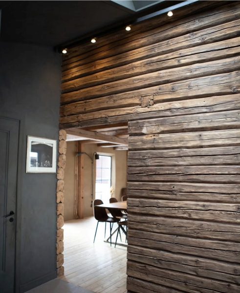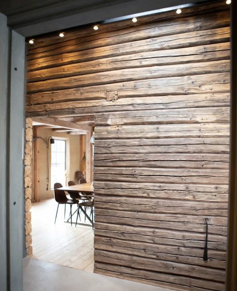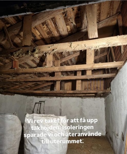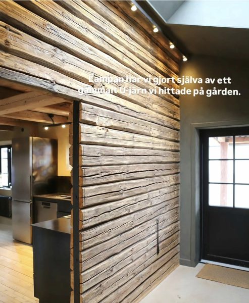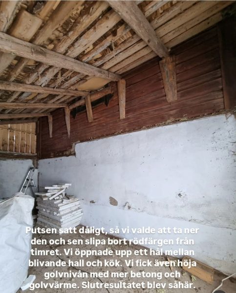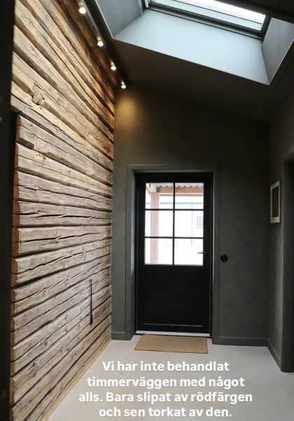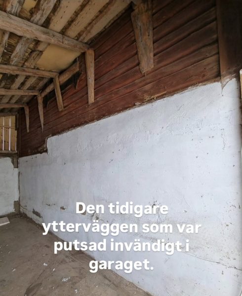 Timmerväggen du ser var ju som sagt tidigare yttervägg på magasinet. Men sen byggdes det någon gång till ett garage. I garaget har vi nu tvättstuga, hall, badrum och bastu!
