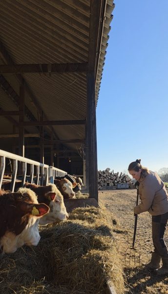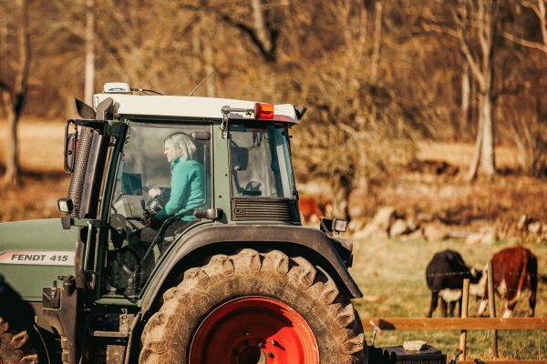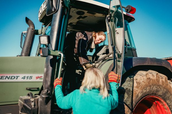 Vi gick på gårdsrunda och stod och hängde hos kossorna en stund som jag tagit ner till fållan. Jag körde Magdalena i traktorn till nästa hållpunkt som var till ladugården för att kika hos kvigorna och tjurarna. Sen spanade vi även in där förberedelserna för att bygga ladugård pågår. Vi avslutade med en fika i vårt uterum.