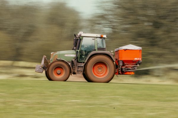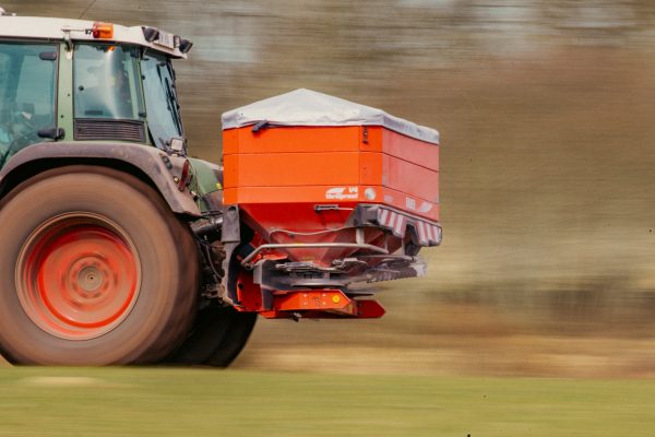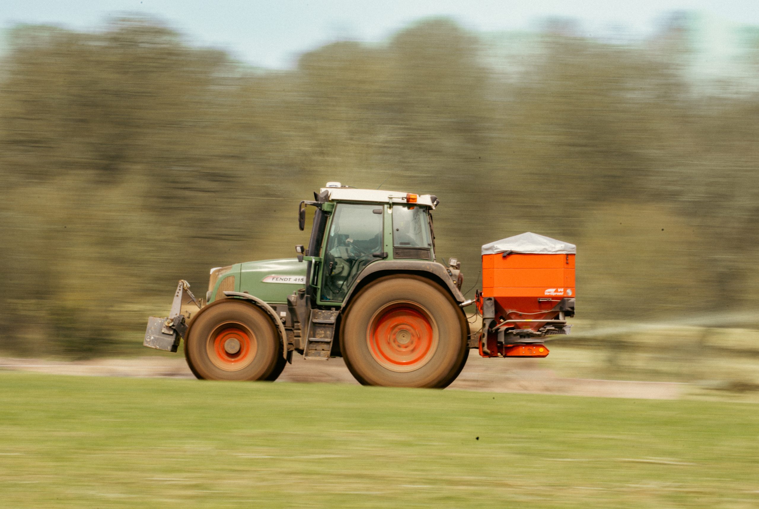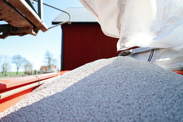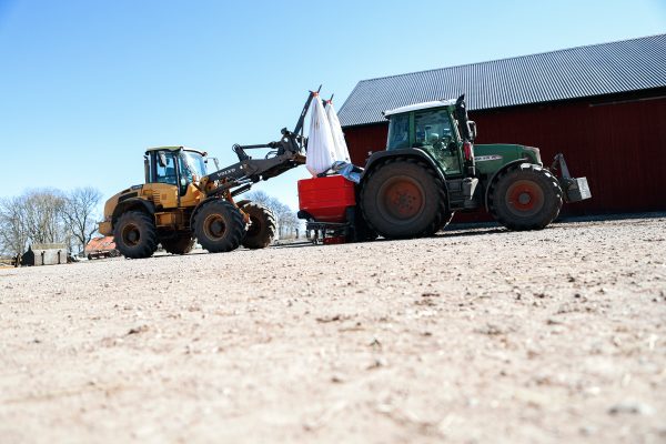 I helgen körde vi igång med att gödsla. Så att köra undan jord har faktiskt stått still i helgen då traktorn har vart ute på detta uppdraget istället.