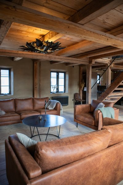 Möbleringen inne i vardagsrummet har inte känts helt 100, så vi testade att ställa sofforna emot varandra istället. Det kändes bra, men lite tomt.