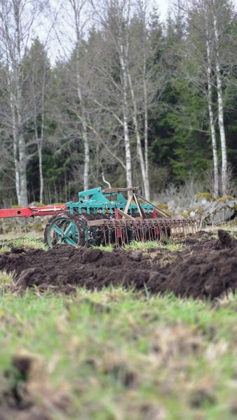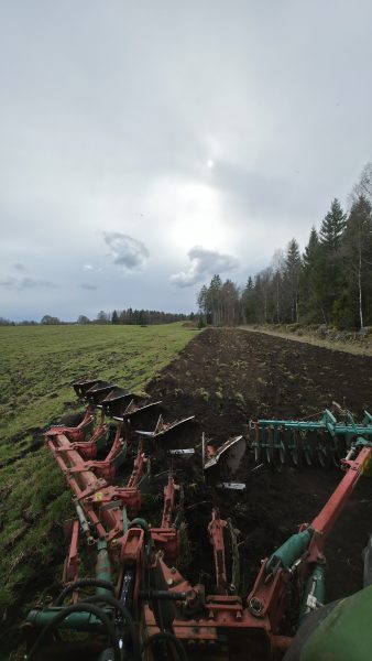 Helgen som var, så startade vårt lilla vårbruk. Lördag eftermiddag och söndag förmiddag förberedde John plogen, sen var det dags att börja plöja. Nu kändes det faktiskt som helg på riktigt för oss för vi hann med något annat än ladugårdsbygget. Jag hann till och med greja lite bakom magasinet i trädgården och så lite blommor.