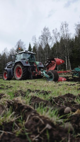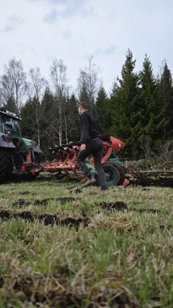 Detta är en vall som inte vart plöjd på sex år. Den har vart ut arrenderad och vi fick den i vintras. Så därför får vi jobba med den så gott vi kan.