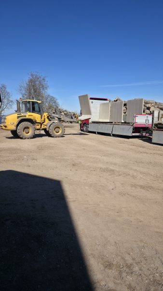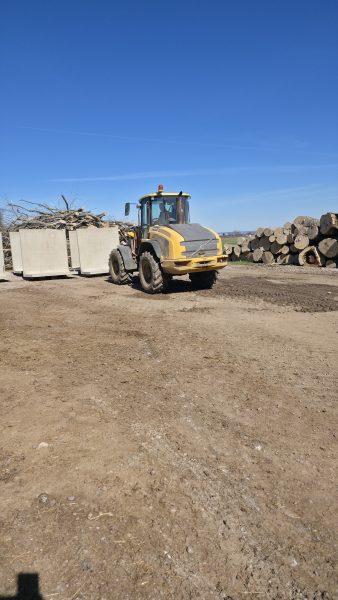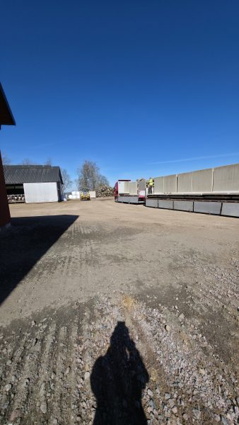 Det har även kommit två lastbilar med L stöd idag. Som vi självklart lastade av vid virkeshögen och just denna dag så kom dom för att hämta virkeshögen på kvällen. Den har legat där i typ tre månader. Men vi flyttade L stöden senare på kvällen idag, så får dom komma i veckan istället.