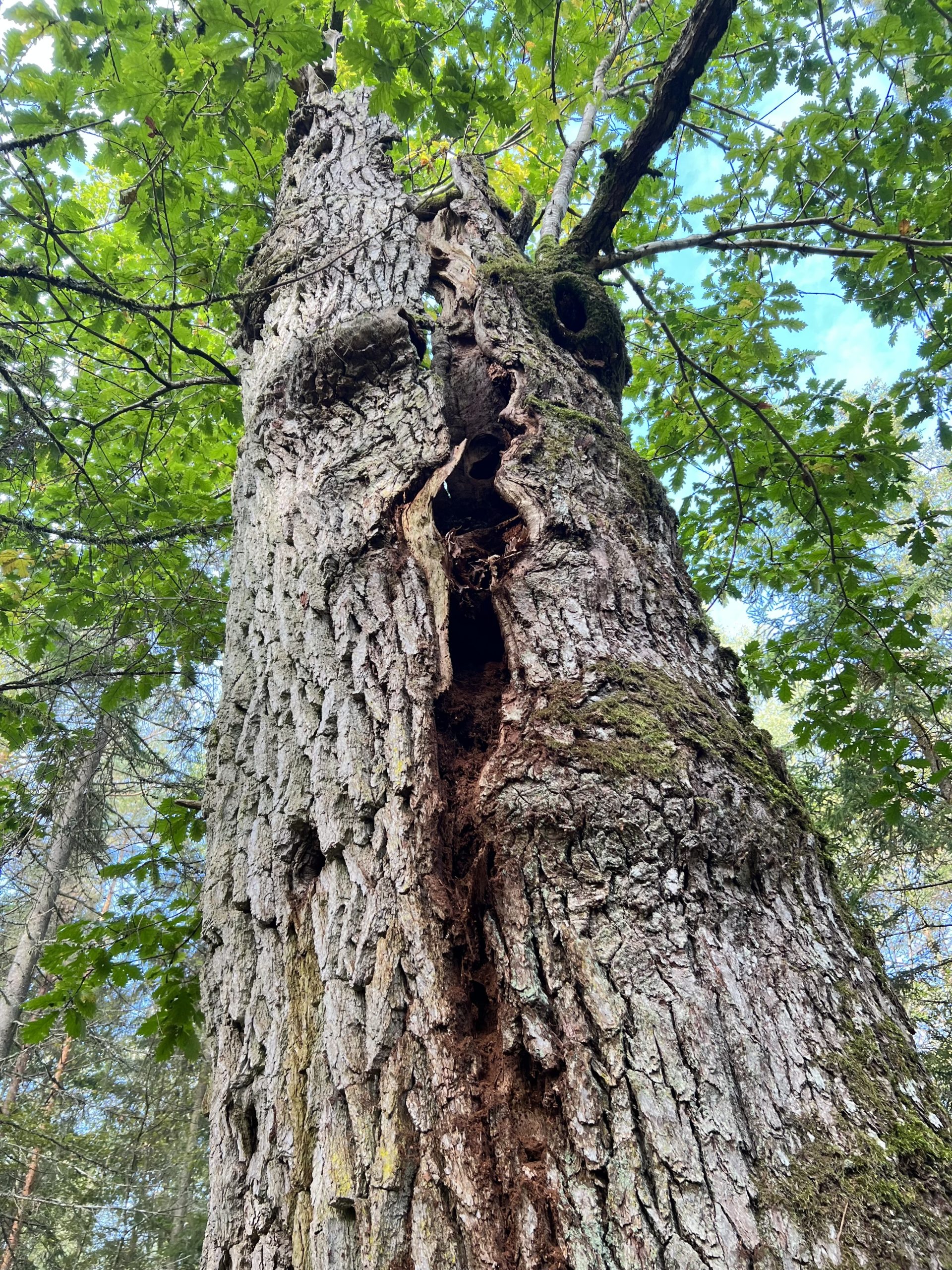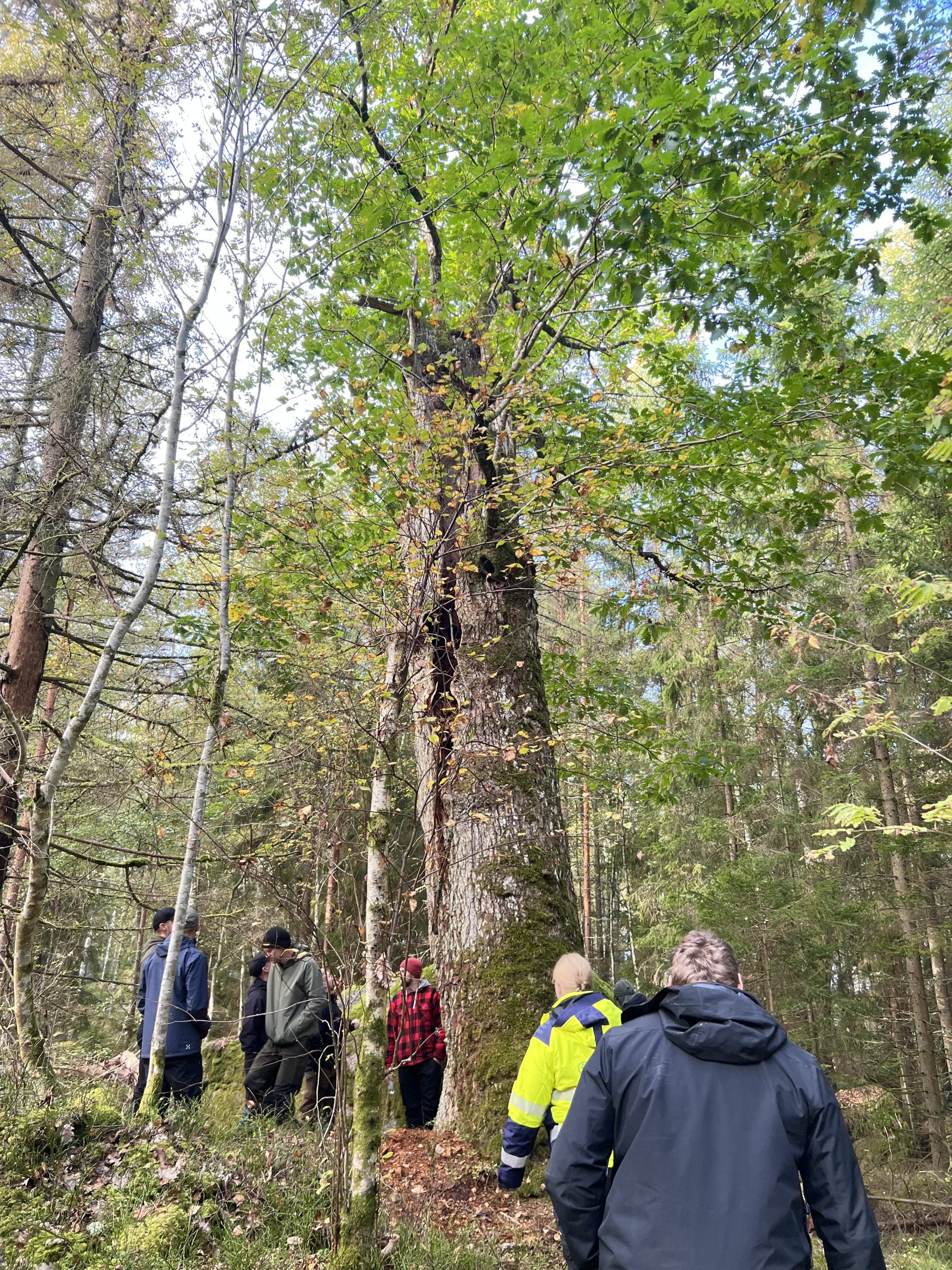 Mitt i skogen fanns ett ”Sockerdricks träd”, ni som kan er Pippi förstår vad jag menar. En stor Bergsek. Här hade man sågat i angränsande granar, med målet att de skulle dö långsamt, för att inte chocka eken med att få för mycket ljus för fort
