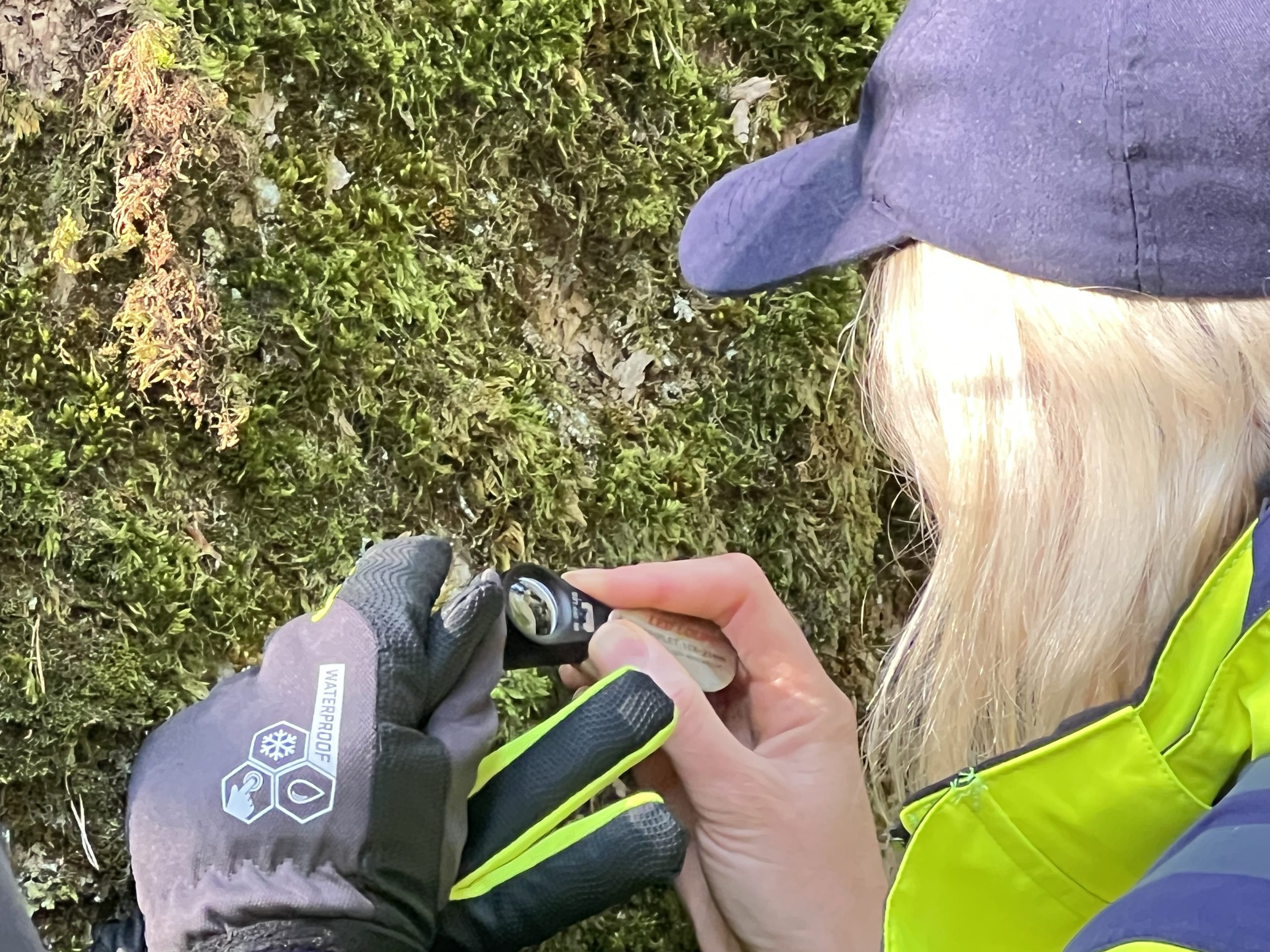 Efter en dag vid datorn med föreläsningar om rödlistade arter och flera djupdykningar i Skogsstyrelsens ”Skyddsvärd skog” var det dags att åka till prästanäsets naturreservat, Hovmantorp. Lyx att kunna varva teori och praktik. Nu ska jag försöka ta er med bland mossor, lavar och naturvärdesträd.