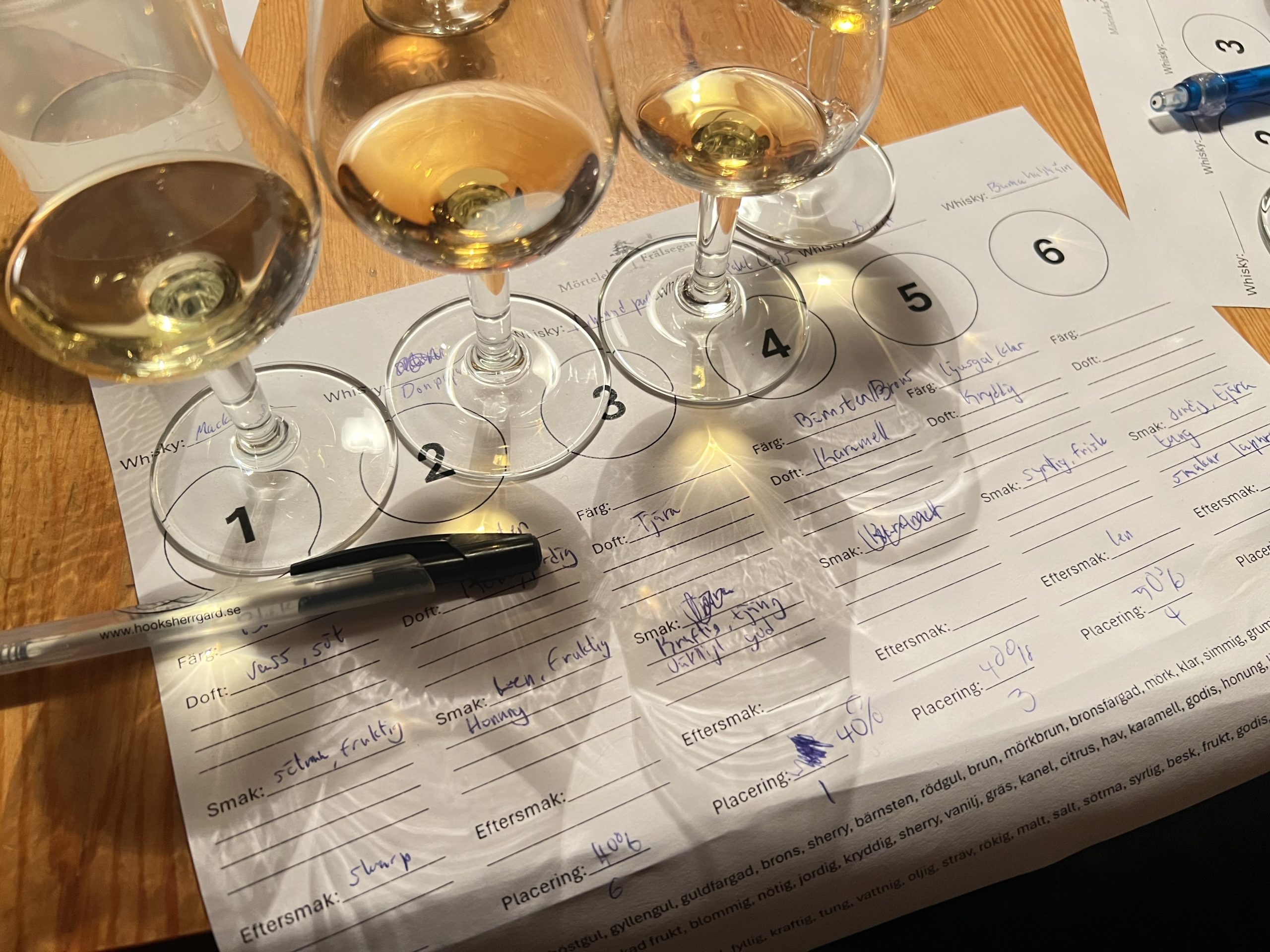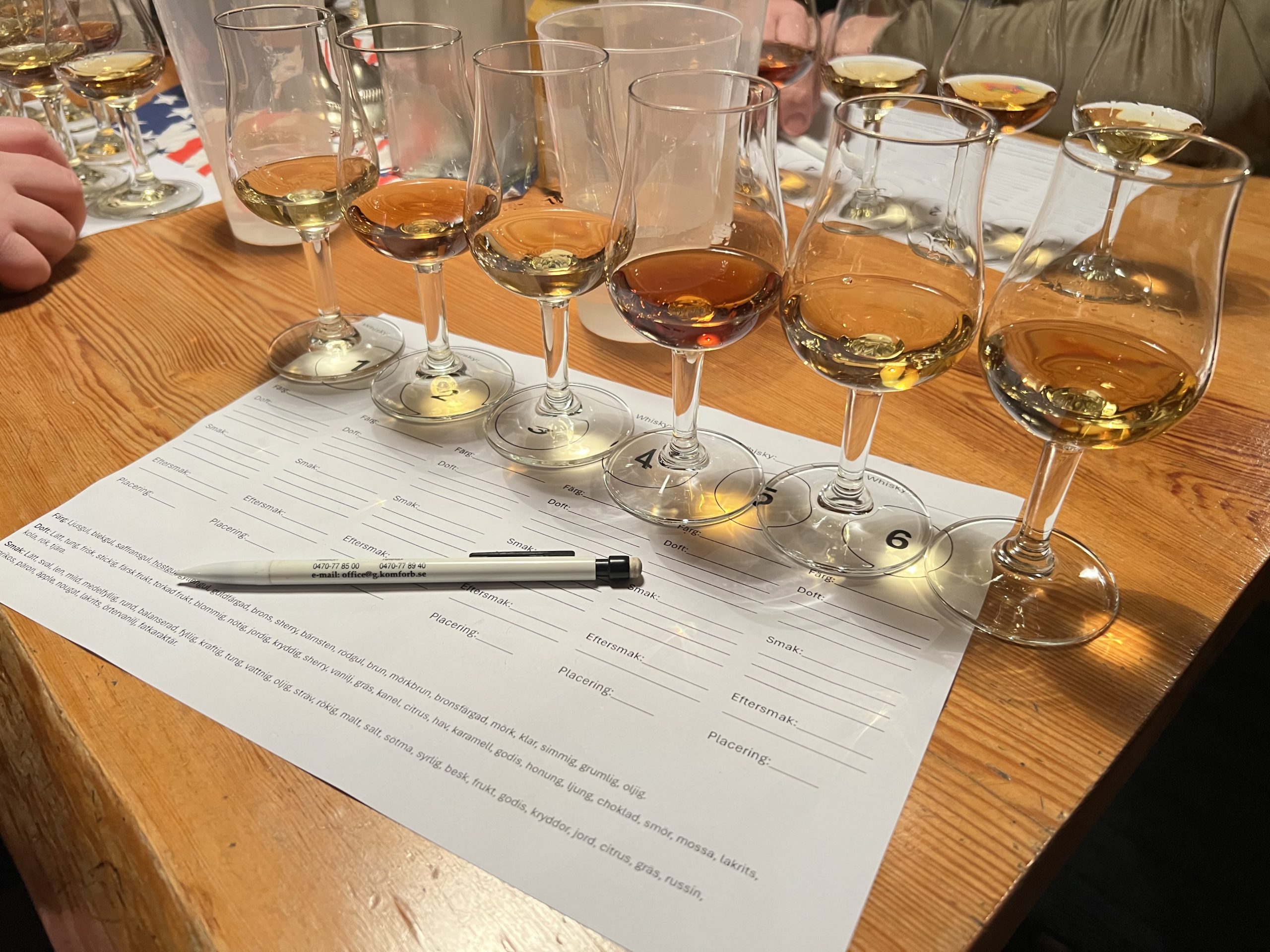 Länge sedan sist, men ikväll var det dags igen att damma av whiskeykunskaperna. Många små glas skulle fyllas med stora smaker.