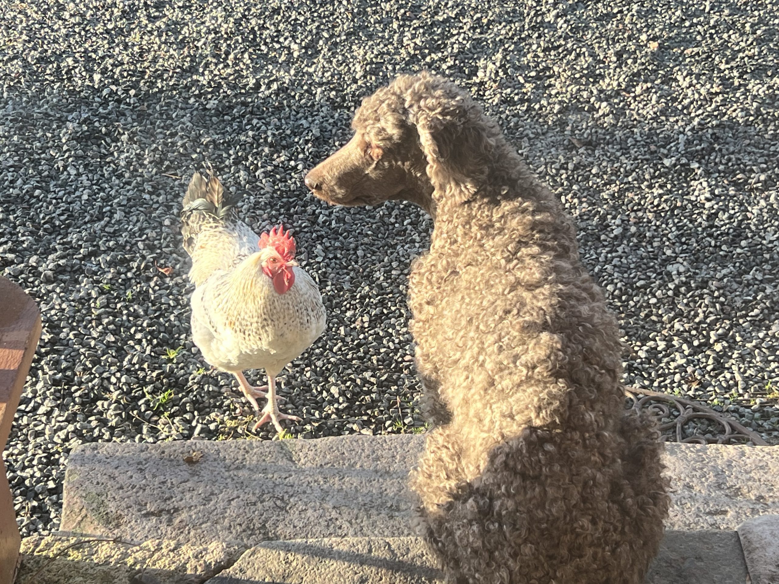 Tjuriga djur är vi vana vid, har en pudel, men tjuriga höns har vi nog inte haft. Envisa har vi haft några…