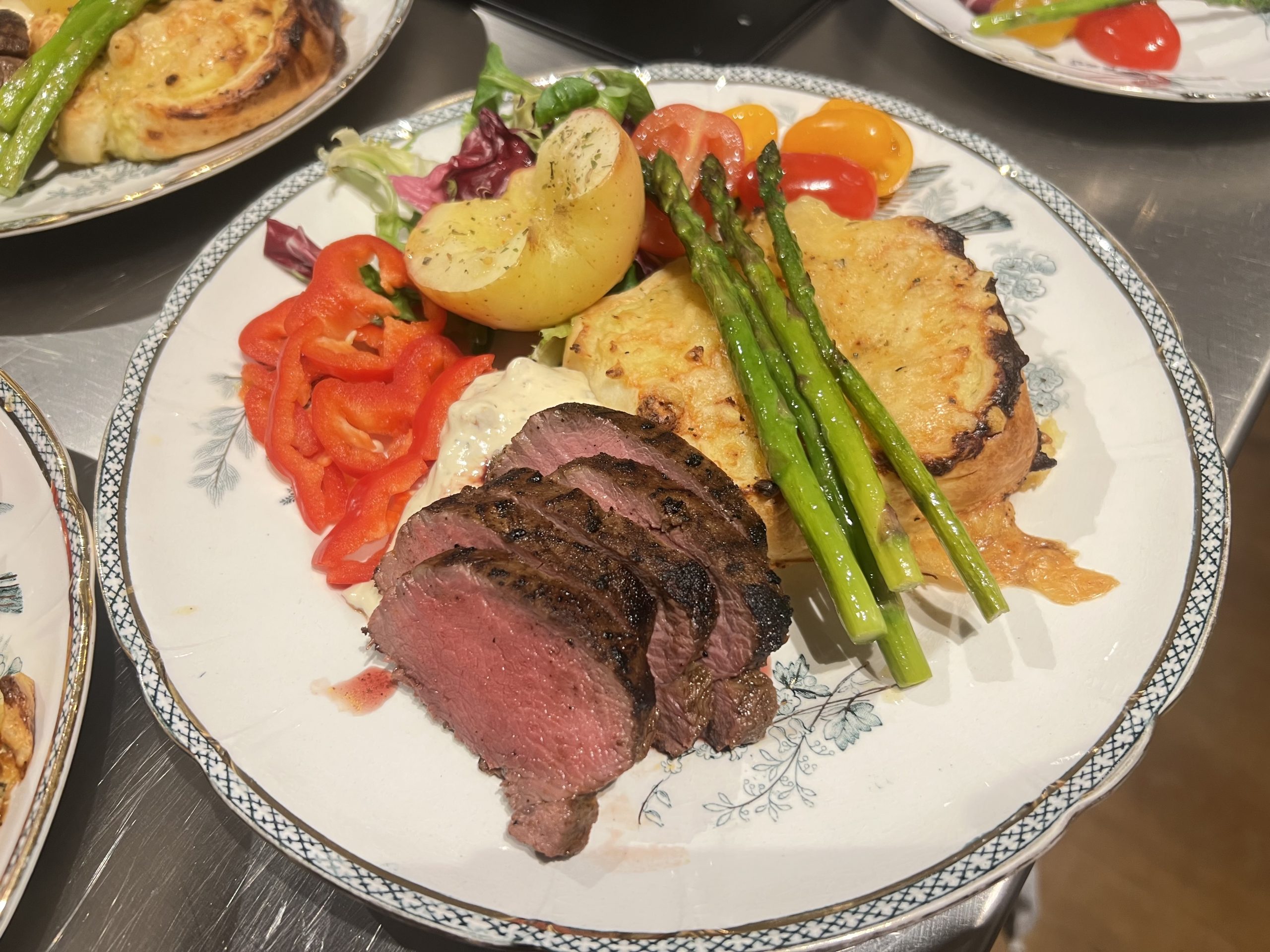 Fortsatte med rådjurssadel (56 grader), potatiskaka med ost och en sås på soltorkade tomater.